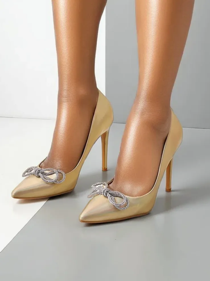 - Czółenka damskie na słupku. Model pokryty tkaniną a’la satyna i posiada wkładkę ze skóry ekologicznej. Nosek w szpic z kokardką nadaje im zmysłowej elegancji. Załóż je do eleganckiej sukienki!