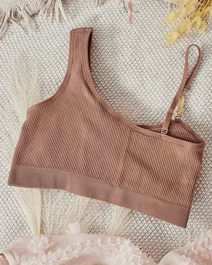 - Klasyczny damski biustonosz wykonany z elastycznego, przyjemnego materiału. Model z ozdobnym ramiączkiem i z wyjmowanymi wkładkami, wykończony na dole gumą. Idealnie dopasuje się do ciała.