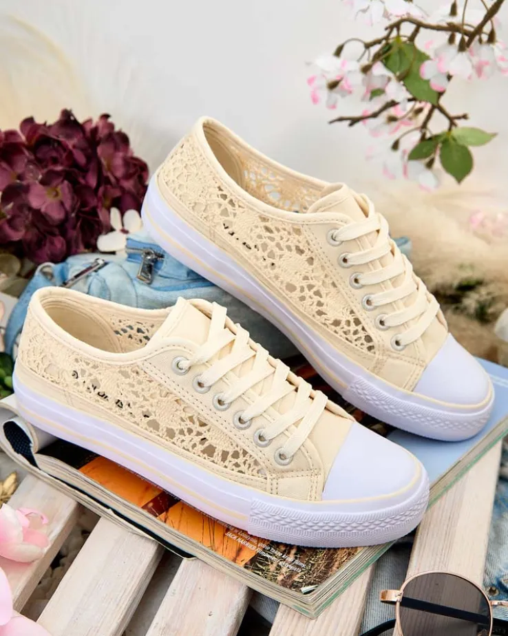 - Damskie buty na płaskiej podeszwie. Para w stylu casual jest wykonana z materiału tkaninowego z ażurowym wykończeniem, wkładka tkaninowa. Model posiada ozdobny haft. Idealne dla tych, którzy cenią komfort!