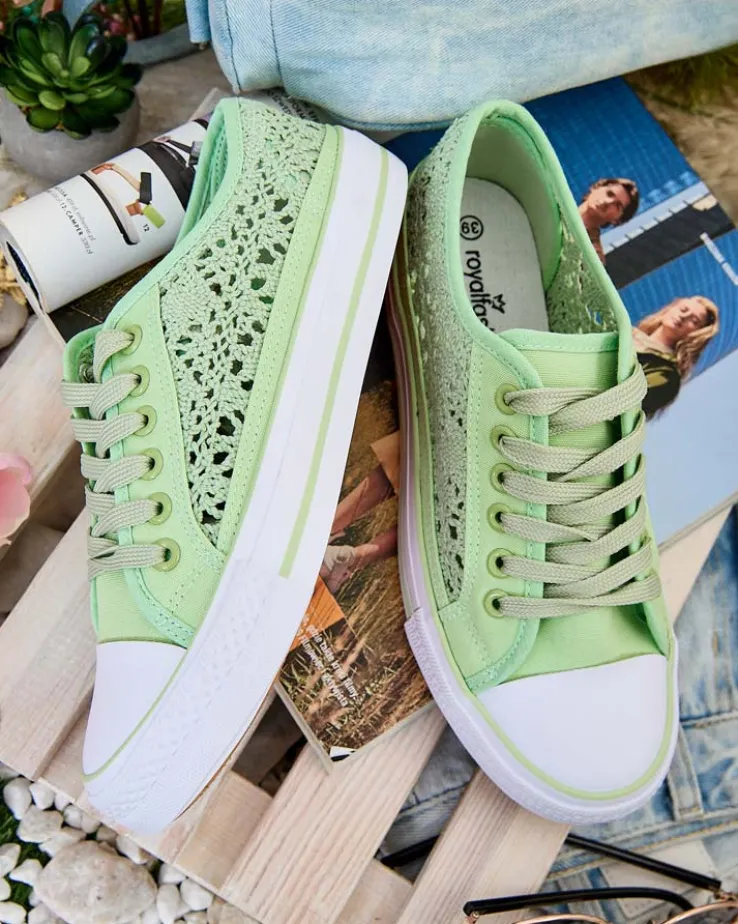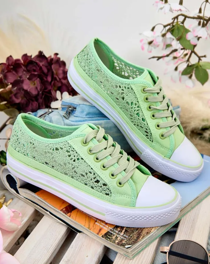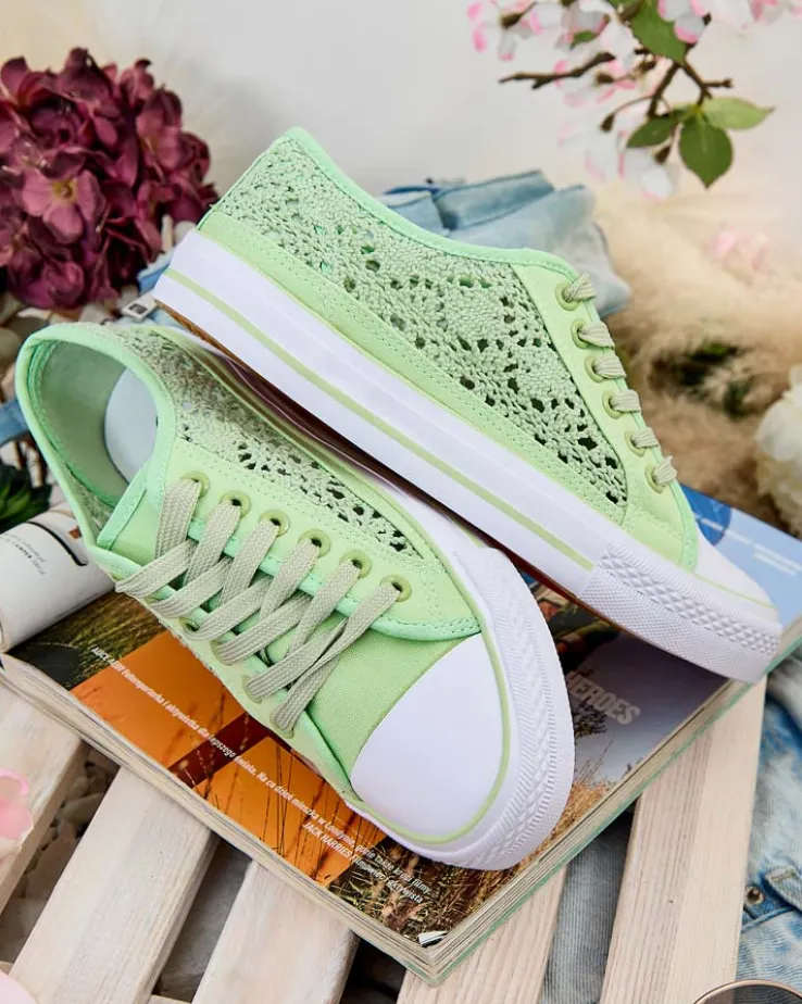 - Damskie buty na płaskiej podeszwie. Para w stylu casual jest wykonana z materiału tkaninowego z ażurowym wykończeniem, wkładka tkaninowa. Model posiada ozdobny haft. Idealne dla tych, którzy cenią komfort!