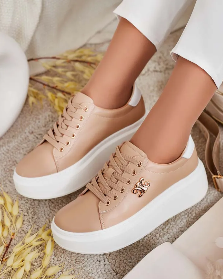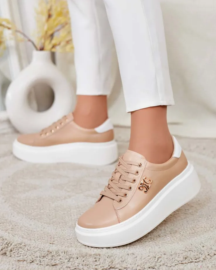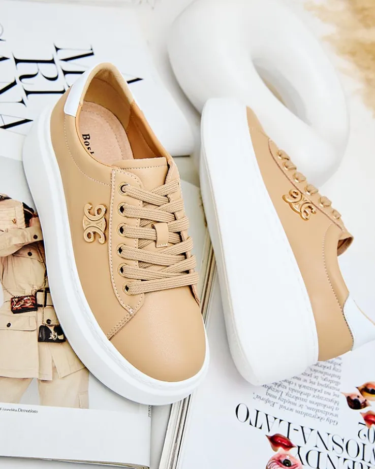 - Damskie buty sportowe wykonane w całości ze skóry naturalnej. Model na platformie. Cholewka sznurowana. Będą świetnie pasowały do codziennych stylizacji!