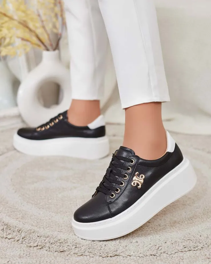 - Damskie buty sportowe wykonane w całości ze skóry naturalnej. Model na platformie. Cholewka sznurowana. Będą świetnie pasowały do codziennych stylizacji!