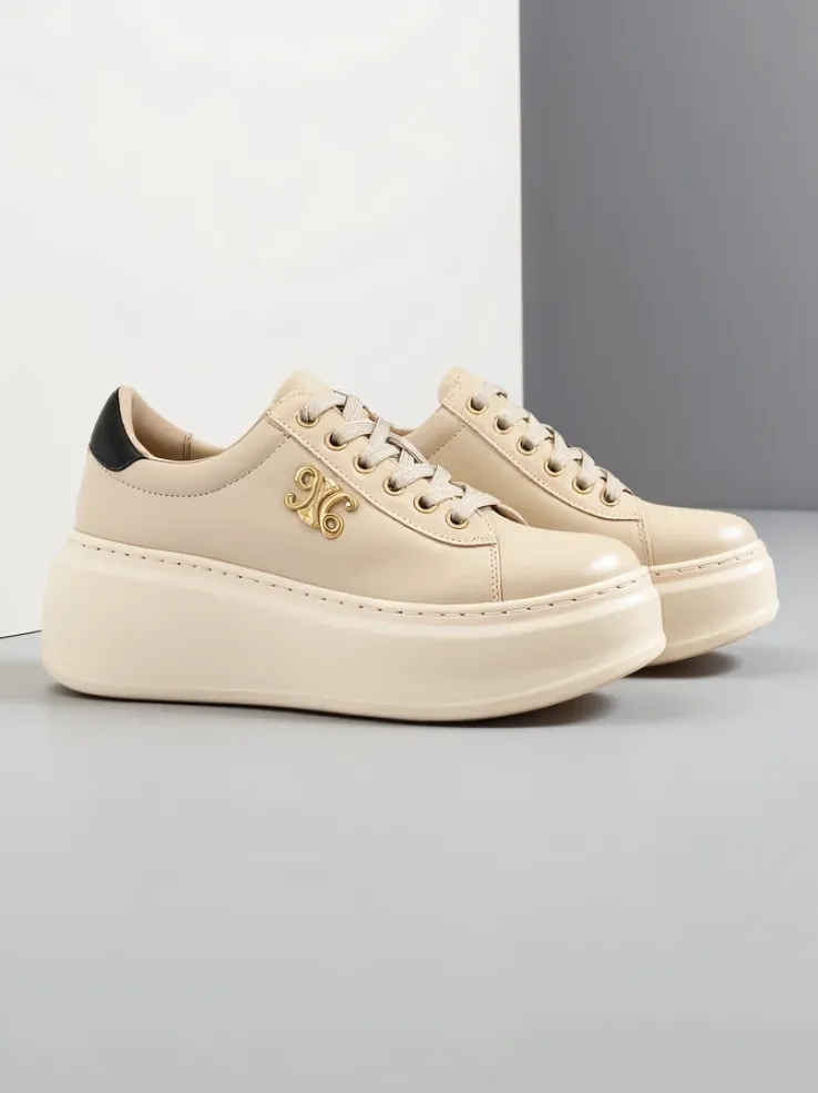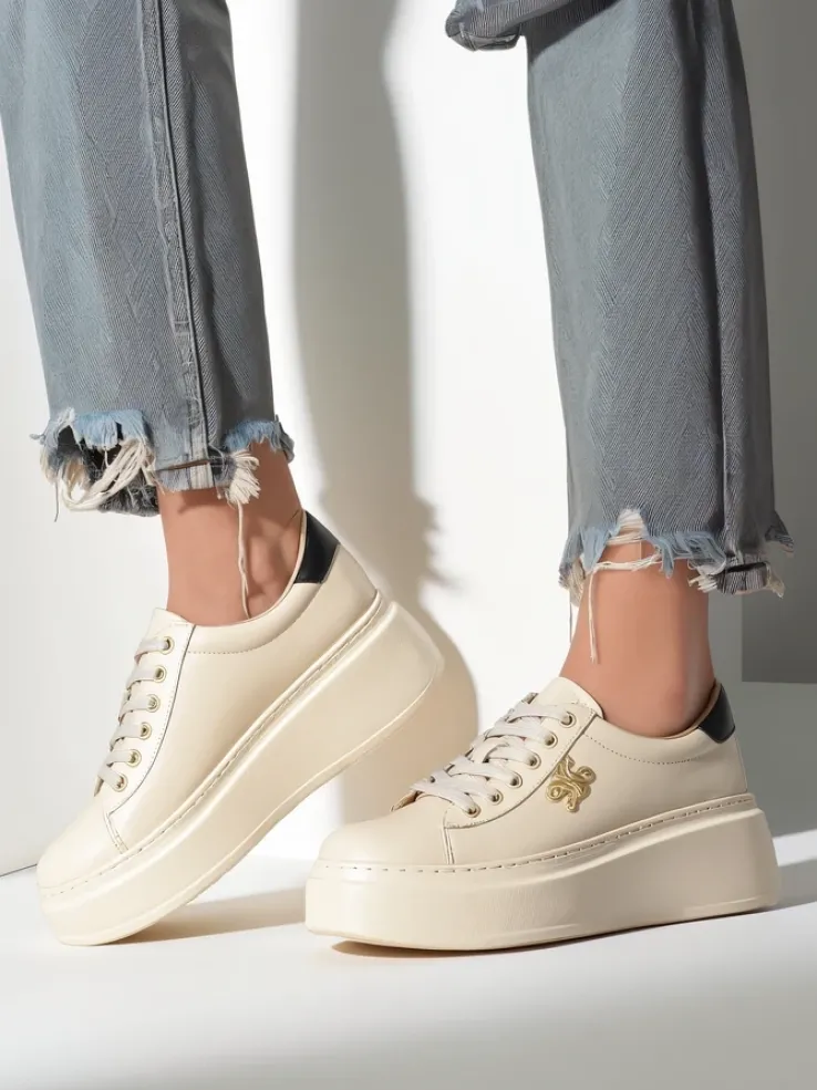 - Damskie buty sportowe wykonane w całości ze skóry naturalnej. Model na platformie. Cholewka sznurowana. Będą świetnie pasowały do codziennych stylizacji!