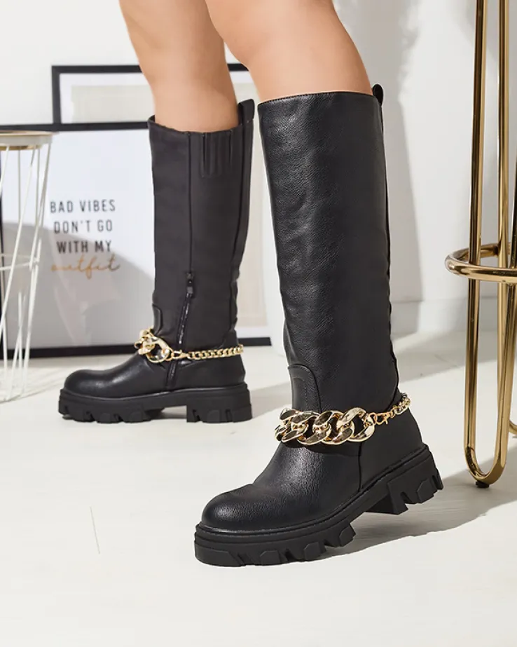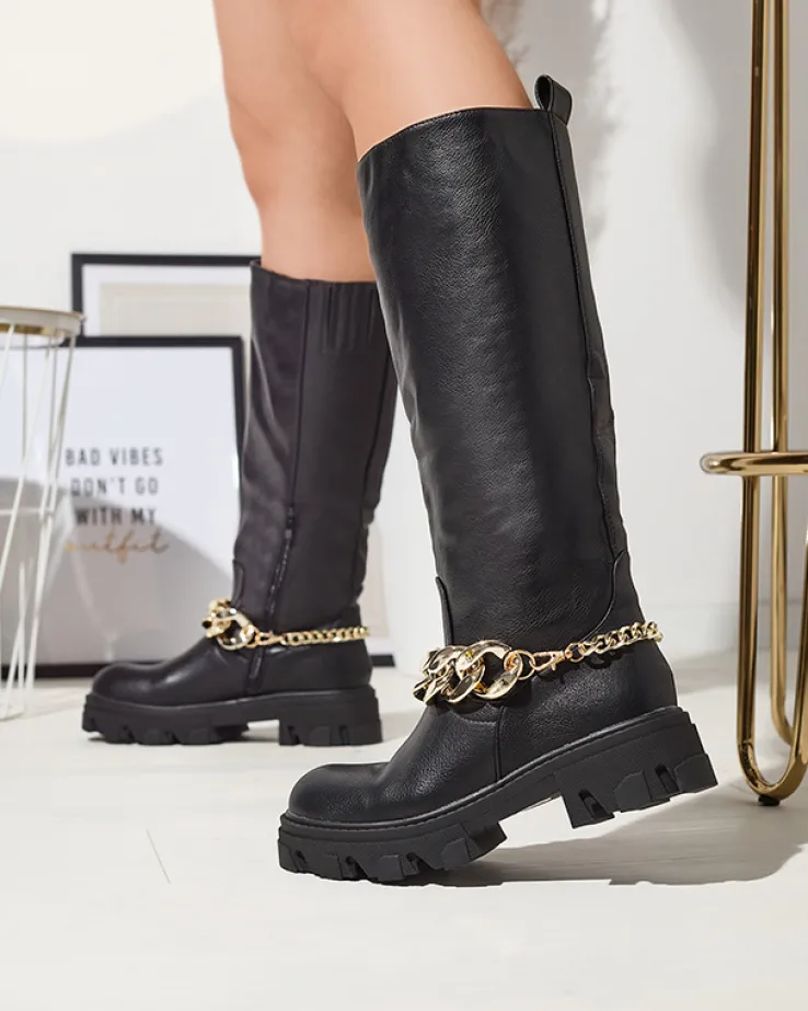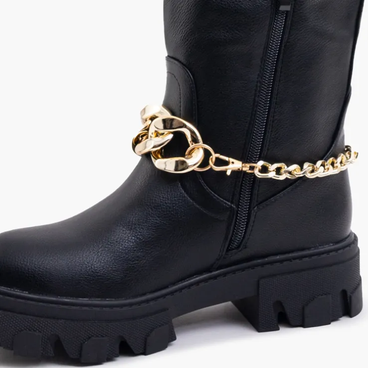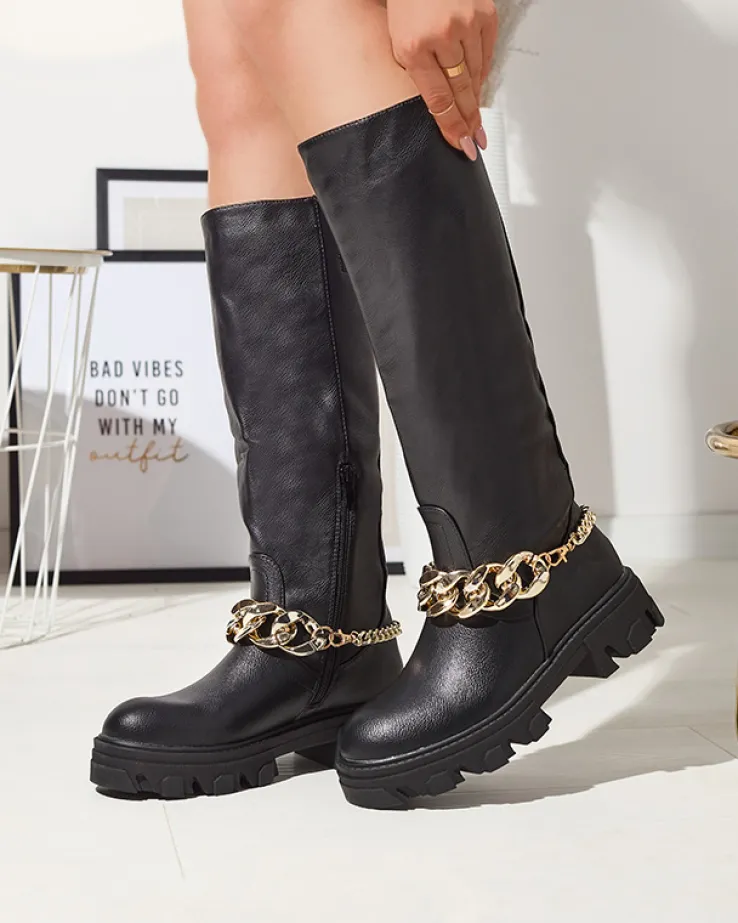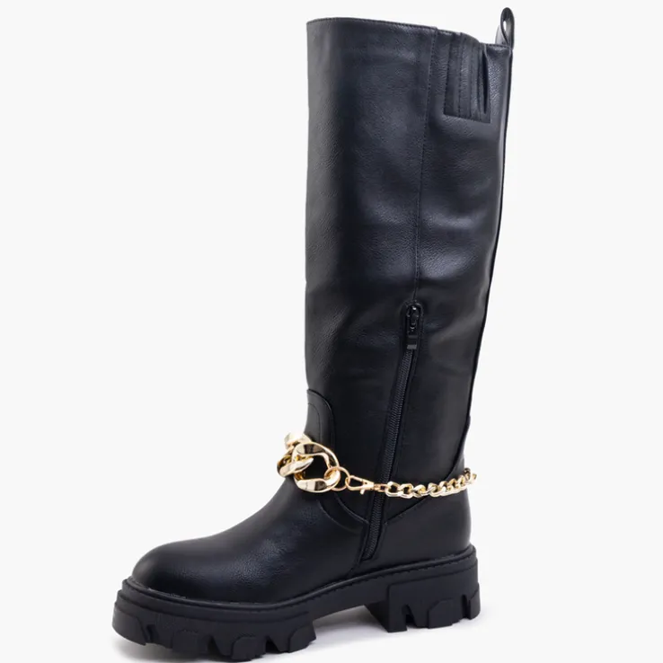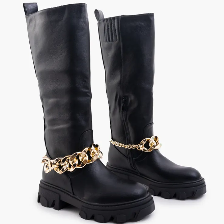 Royalfashion Damskie czarne kozaki z łańcuszkiem Sudzi