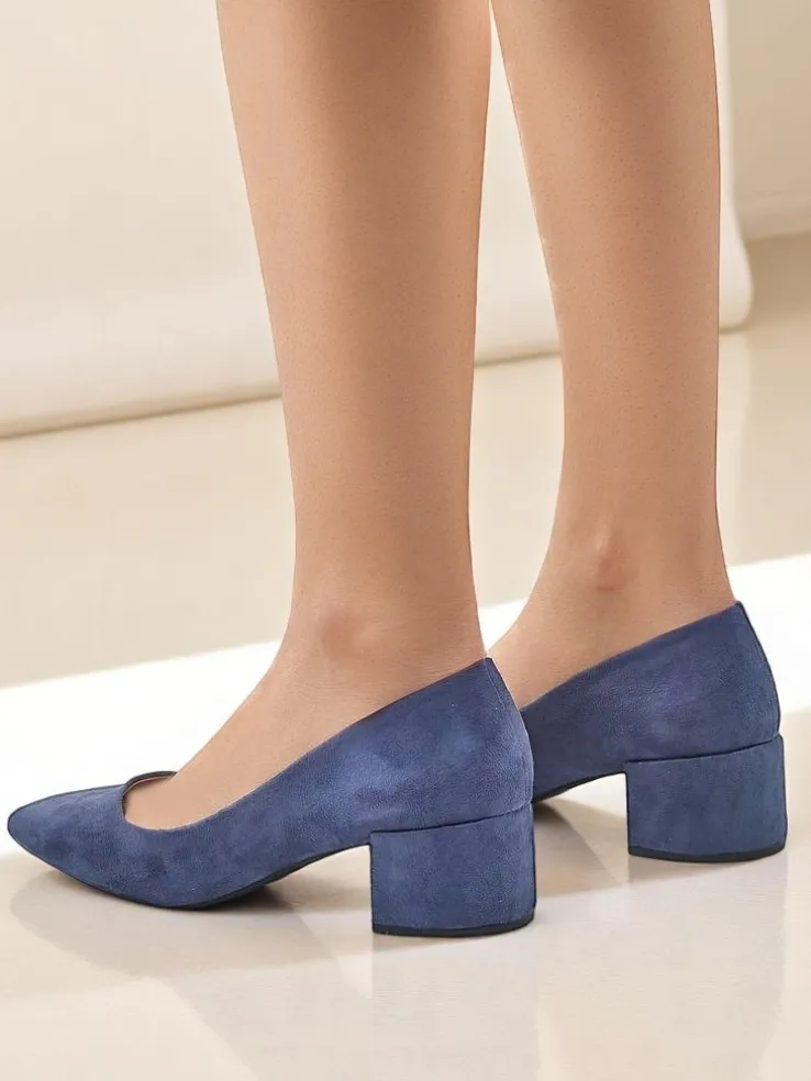 - Przepiękne damskie czółenka na niskim obcasie. Cholewka wykonana jest z zamszu ekologicznego, zaś środek wyłożony skórą ekologiczną. Nosek w szpic. Te buty dodadzą elegancji do każdego looku!