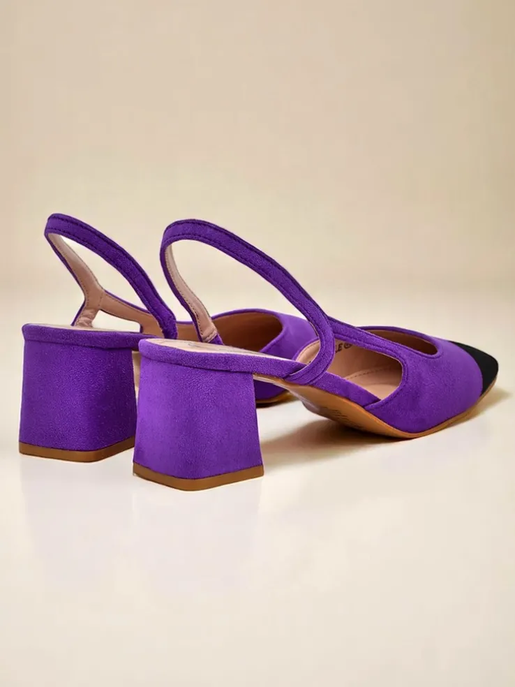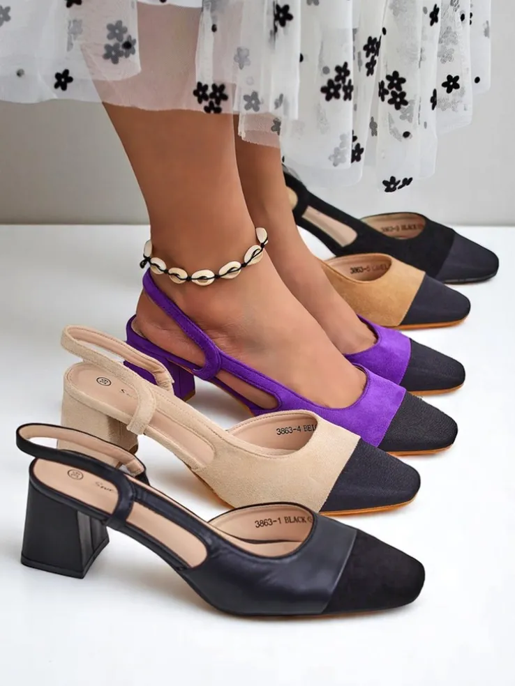 - Czółenka z eko zamszu, zapinane na sprzączkę. Wygodna, skórzana wkładka i stylowy czarny, kwadratowy nosek. Klasyka i komfort na co dzień i wyjątkowe okazje.