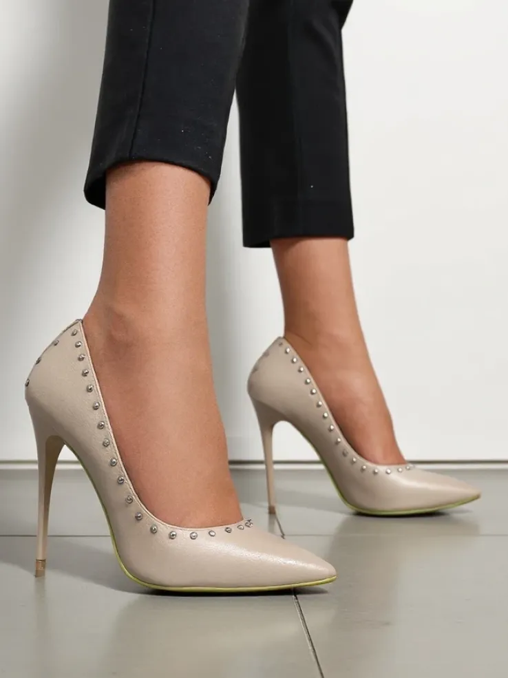 - Eleganckie damskie czółenka na szpilce, wykonane ze skóry ekologicznej. Środek buta jest wyłożony skórą ekologiczną, a nosek w szpic. Klasa i szyk mody!