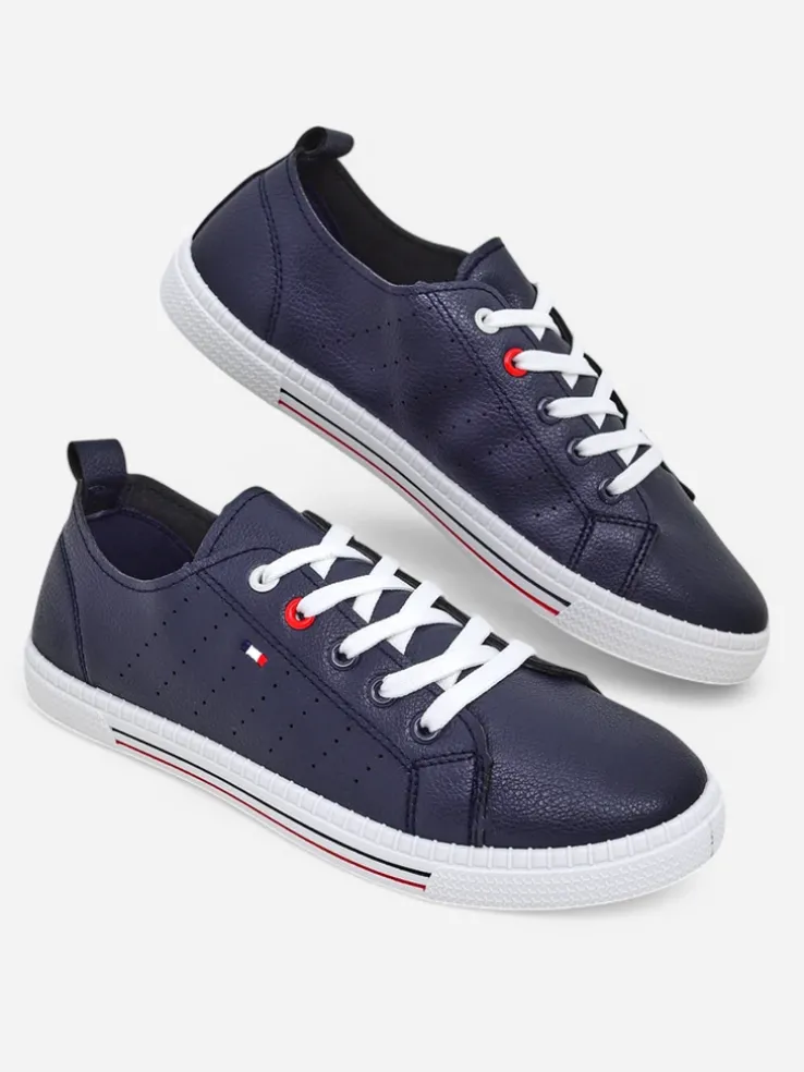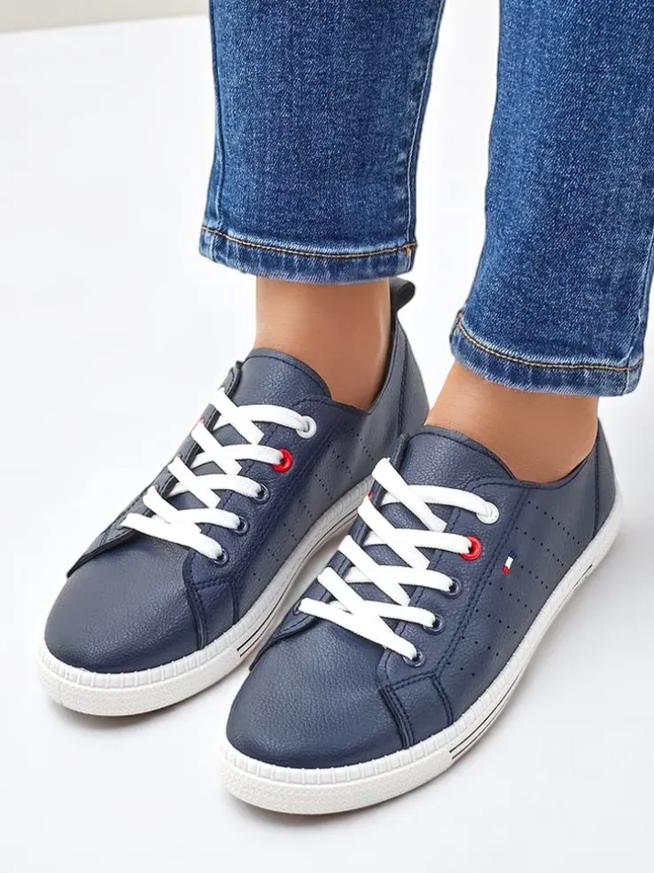 - Klasyczne trampki z eko skóry, wnętrze jest wyłożone tkaniną. Bardzo wygodne , sznurowane. Obuwie pasuje do wielu codziennych stylizacji!