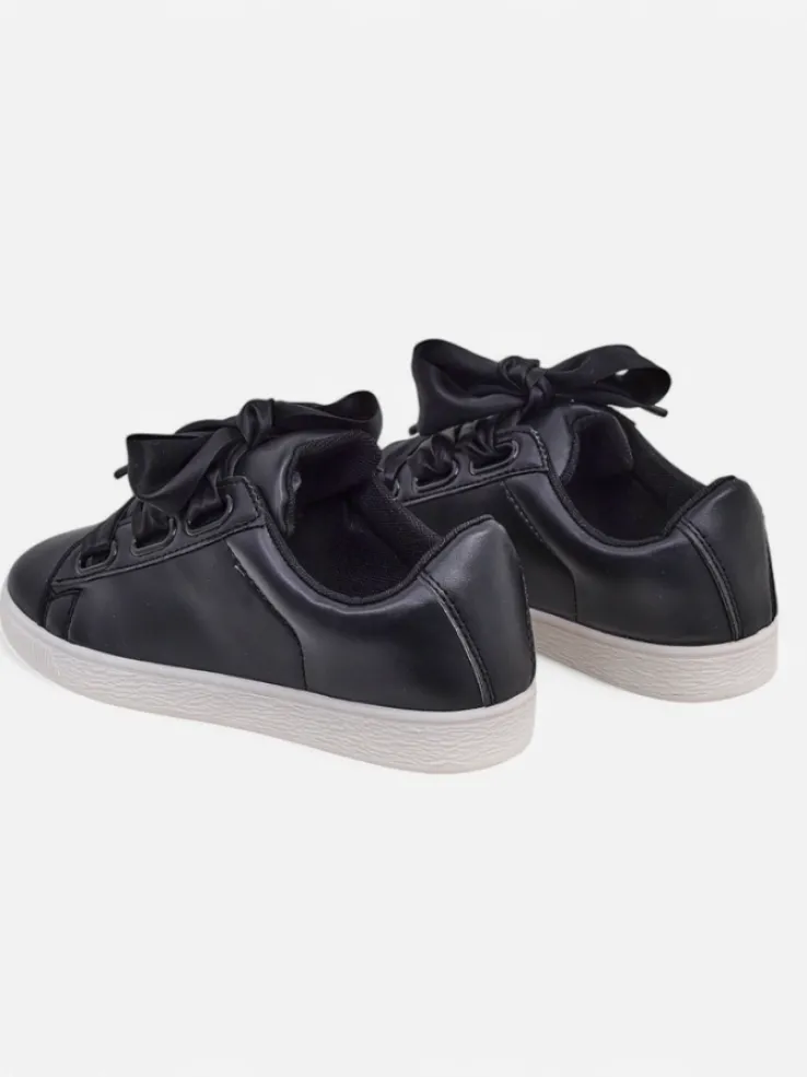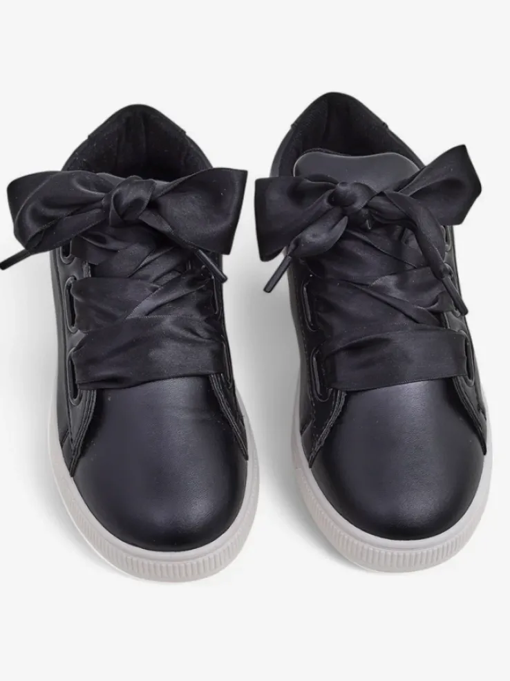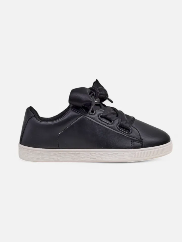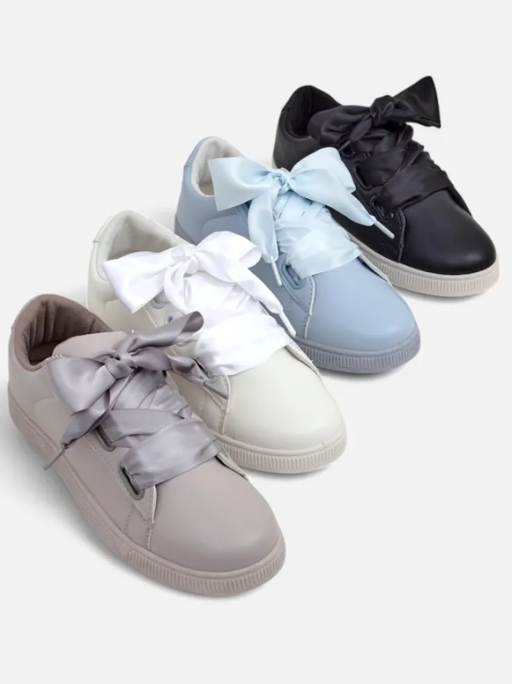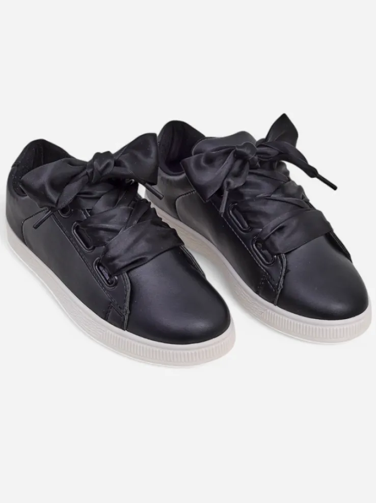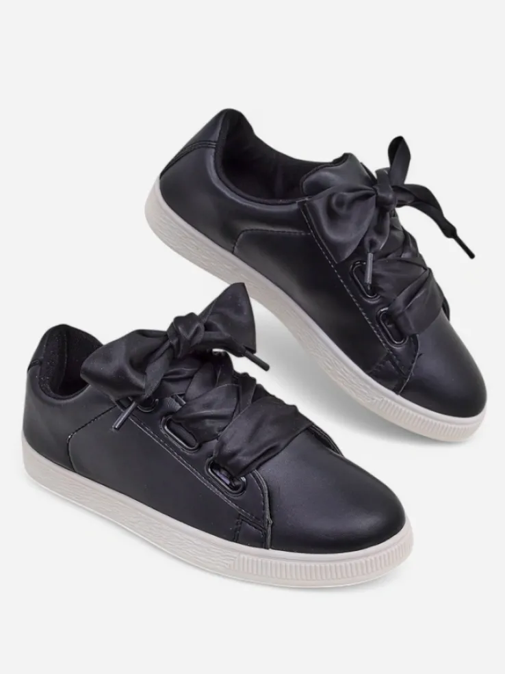 - Klasyczne trampki z eko skóry, wnętrze jest wyłożone tkaniną. Bardzo wygodne , sznurowane ozdobnymi wstążkami. Obuwie pasuje do wielu codziennych stylizacji!