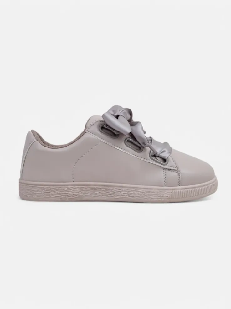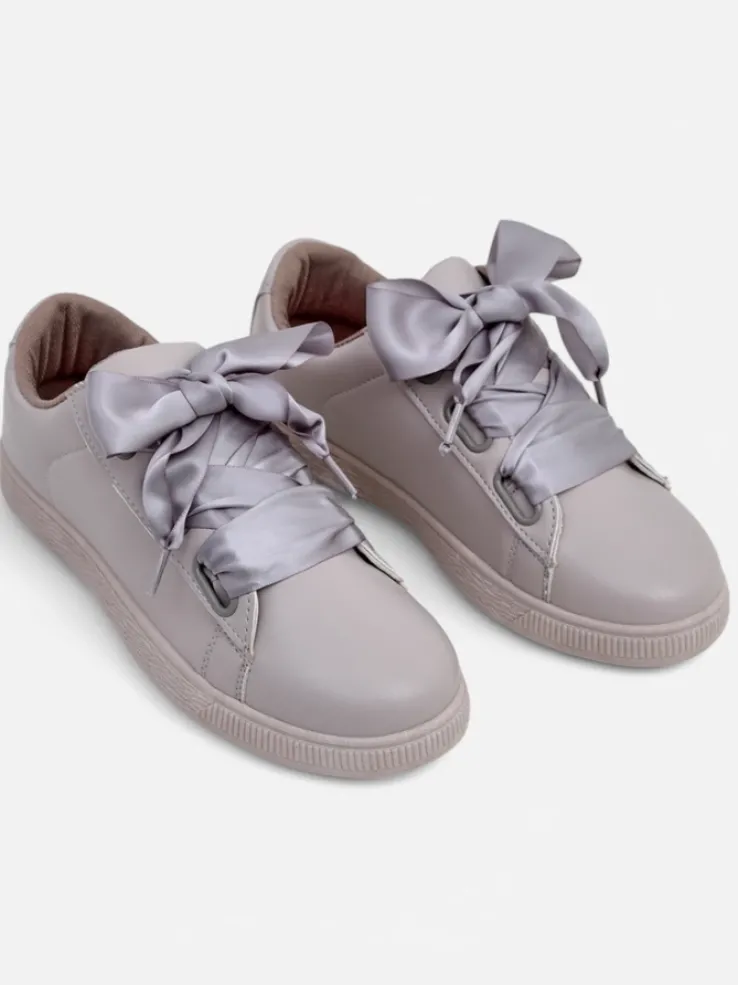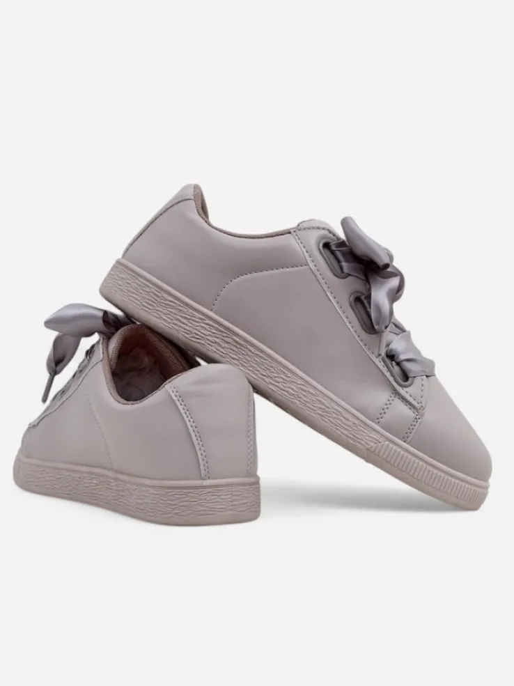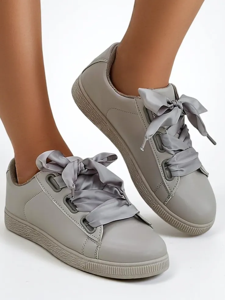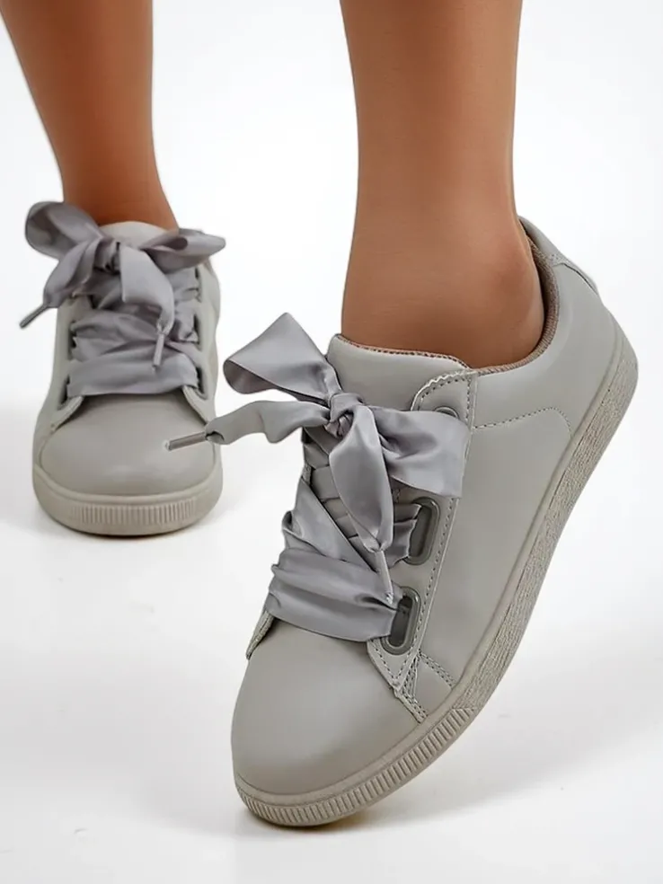 - Klasyczne trampki z eko skóry, wnętrze jest wyłożone tkaniną. Bardzo wygodne , sznurowane ozdobnymi wstążkami. Obuwie pasuje do wielu codziennych stylizacji!