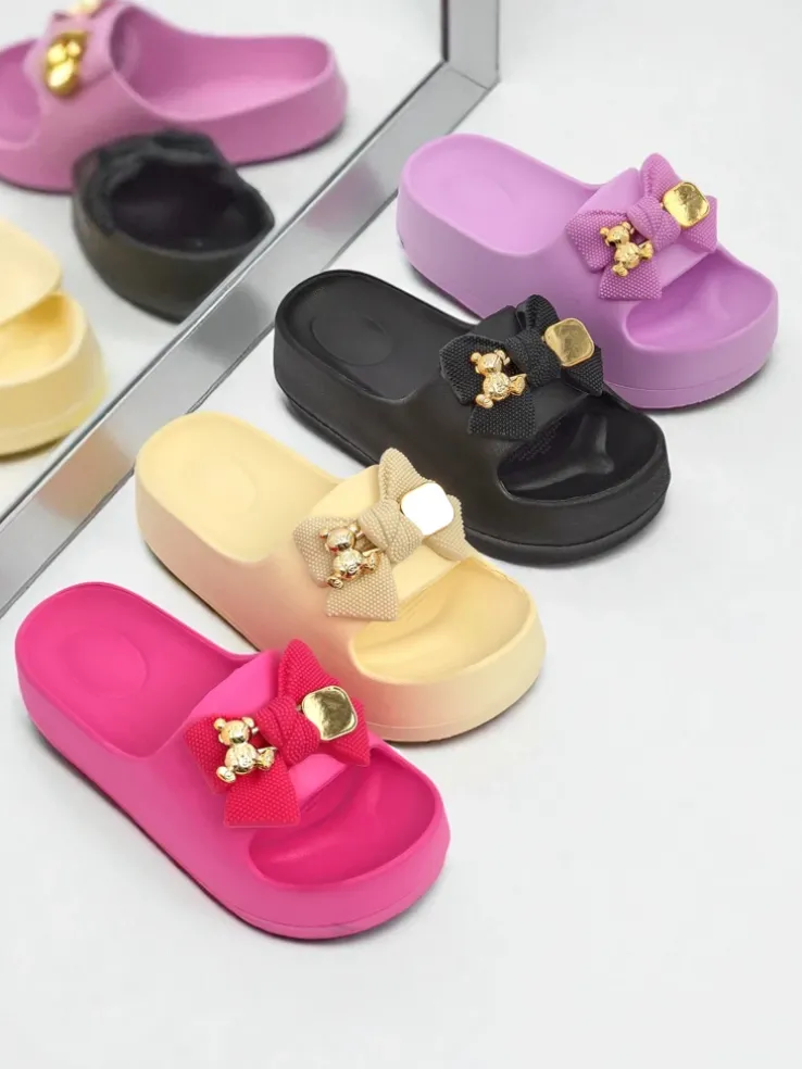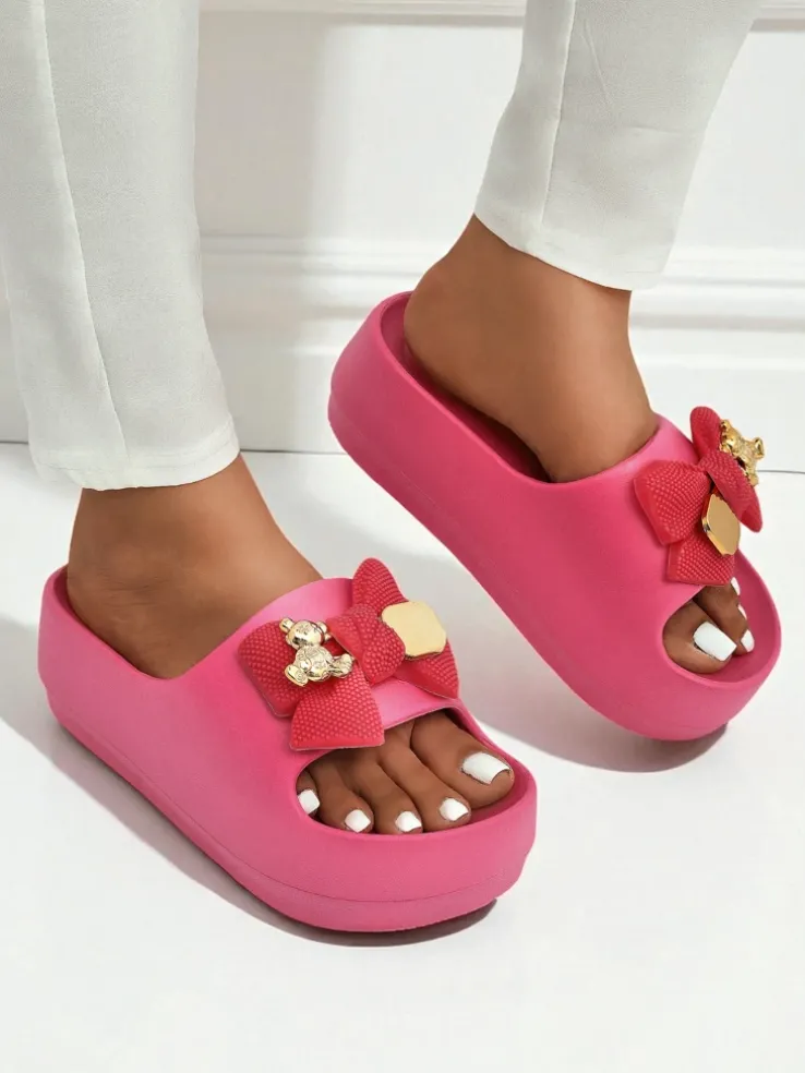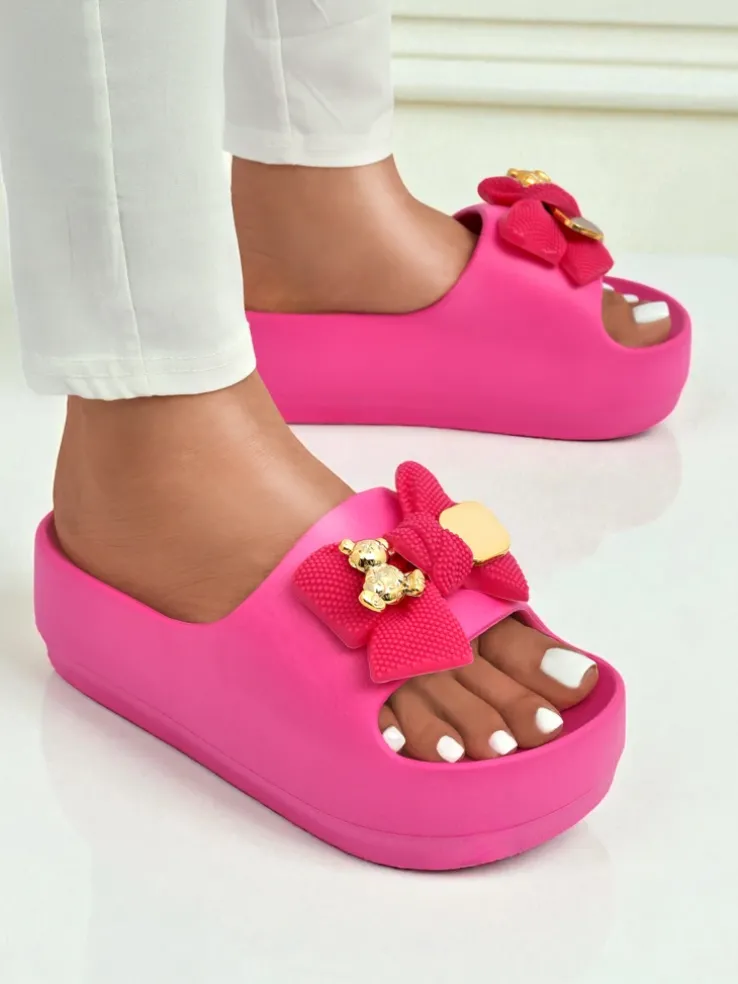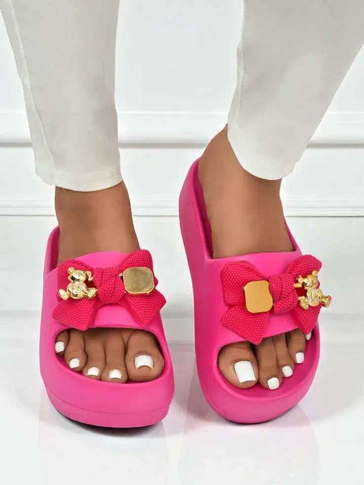 Royalfashion Damskie gumowe klapki z ozdobną kokardką Alday