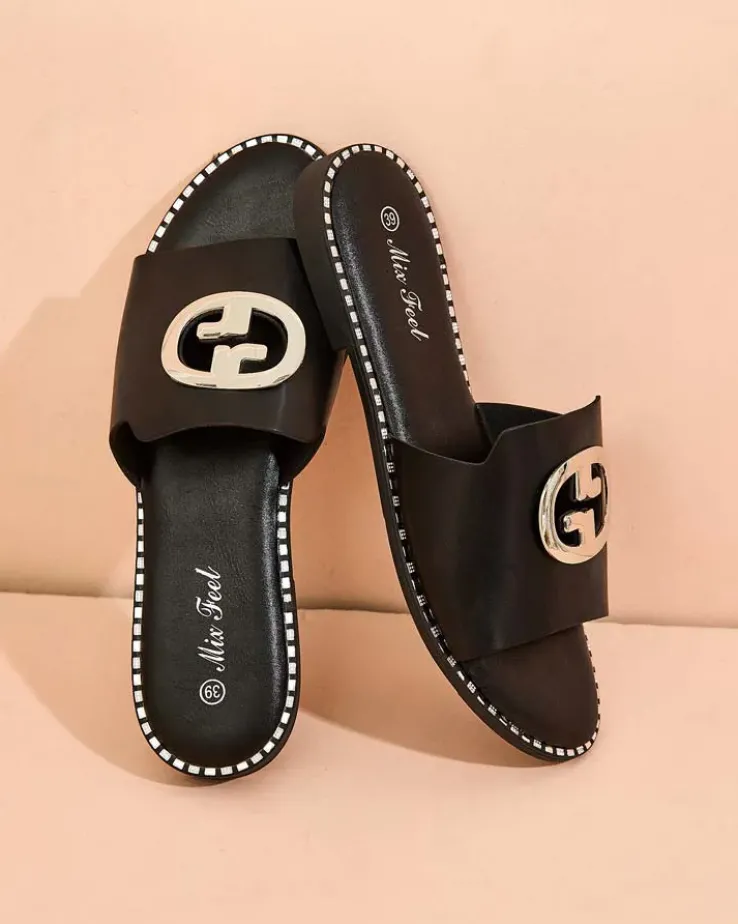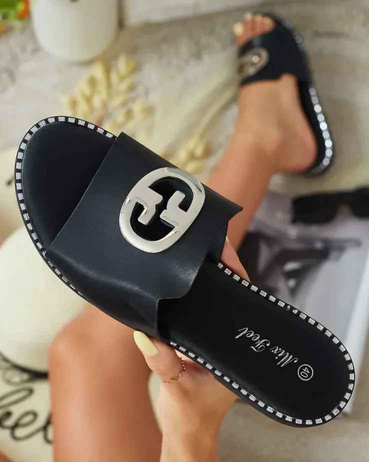 - Świetne damskie klapki na płaskiej podeszwie. Wykonane w całości z ekologicznej skóry. Posiadają na cholewce ozdobę. Idealny wybór na wakacje!