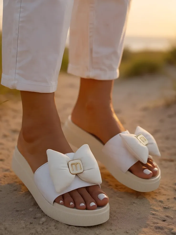 Royalfashion Damskie klapki na platformie z kokardką Mivo Jump