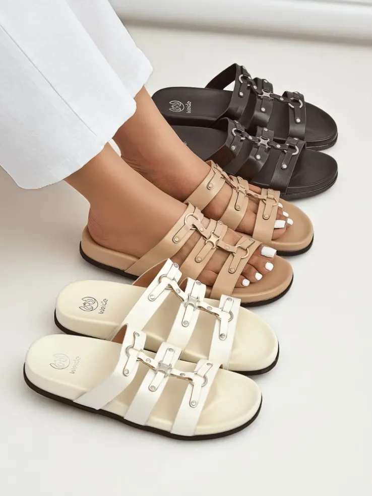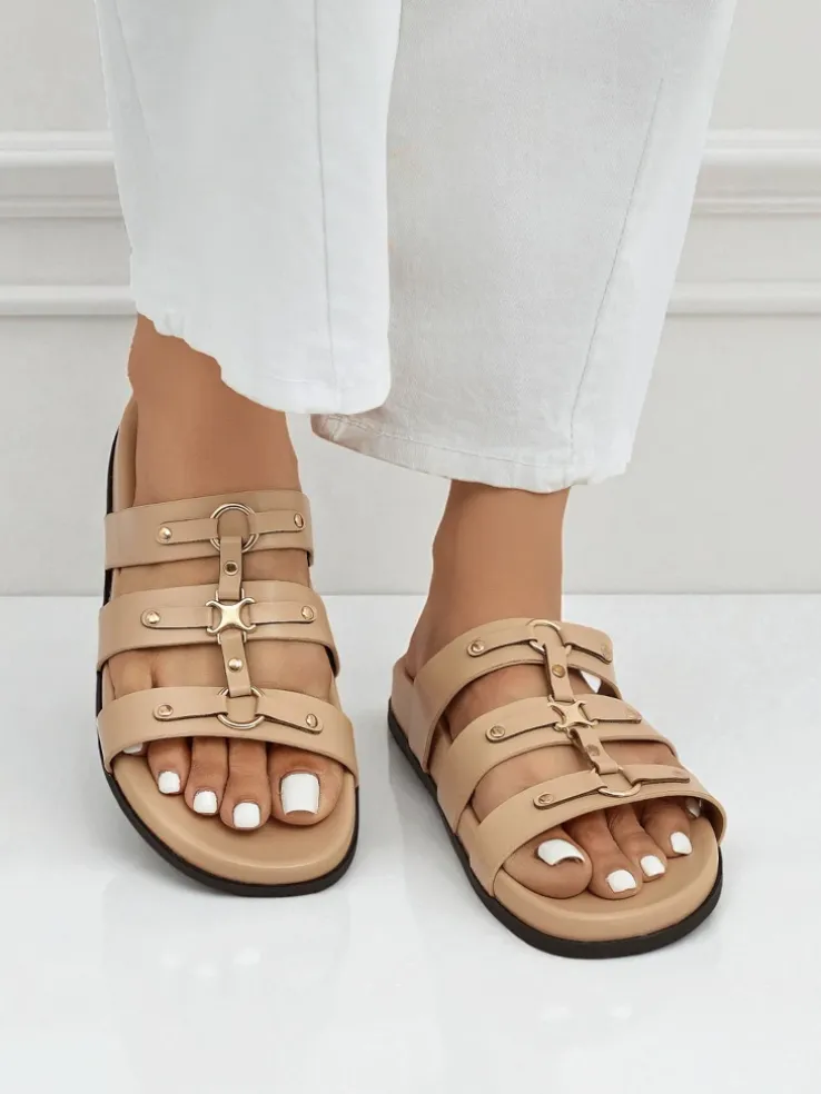 - Stylowe klapki w stylu rzymianek łączą klasyczną elegancję z wygodą. Paski efektownie oplatają stopę, zapewniając stabilność i modny wygląd. Idealne na lato – do sukienek, szortów i miejskich spacerów.