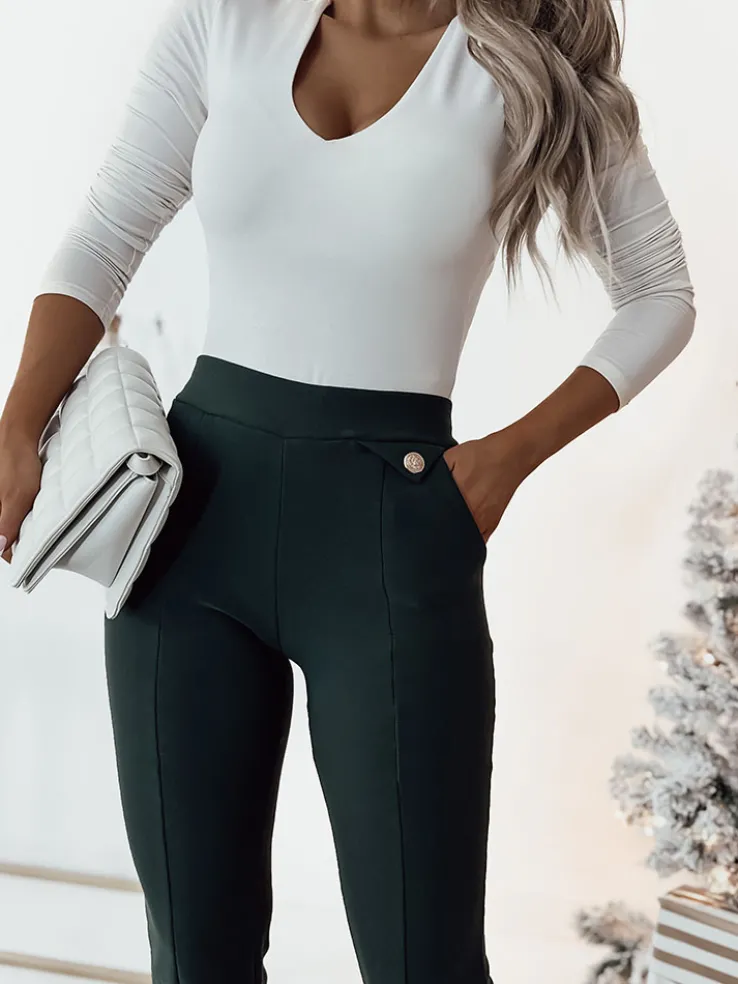 - Damskie ocieplane tregginsy a’la dzwony to połączenie stylu i komfortu. Model z szeroką gumą w pasie, doskonale dopasowuje się do figury, zapewniając wygodę i swobodę ruchów. Te tregginsy dodają stylizacji modnego charakteru.