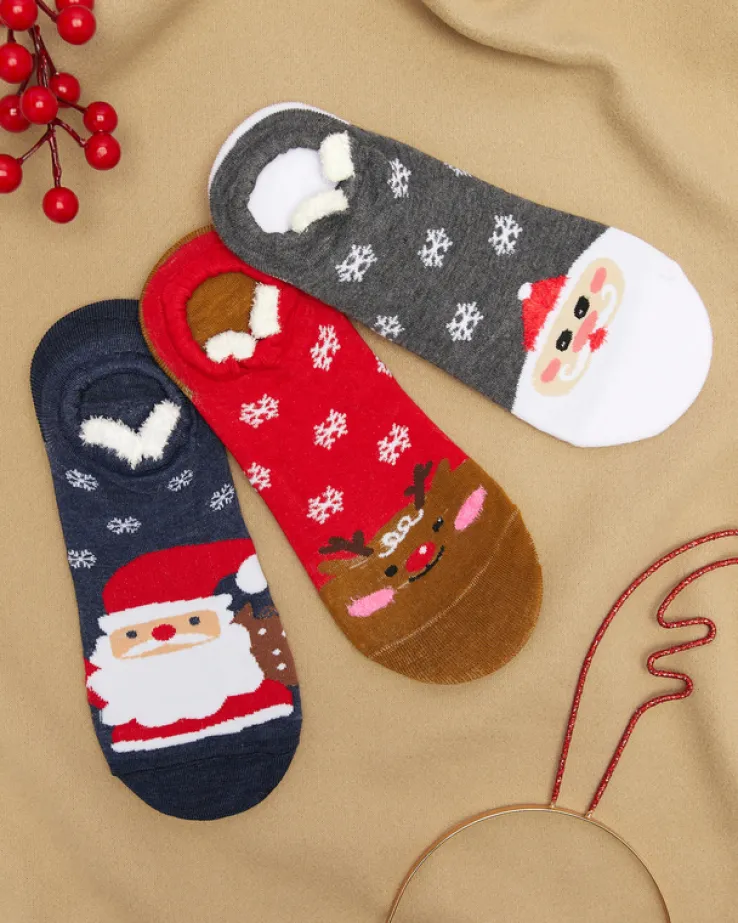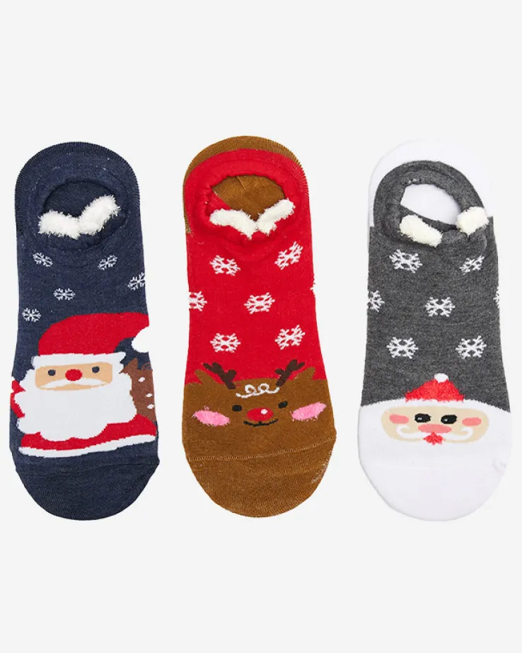 - Kolorowy damski świąteczny mix 3 par skarpet, wykonany z materiału bawełnianego. Model z uroczymi motywami ze zwierzętami i mikołajkami – to idealny pomysł na prezent na gwiazdkę!