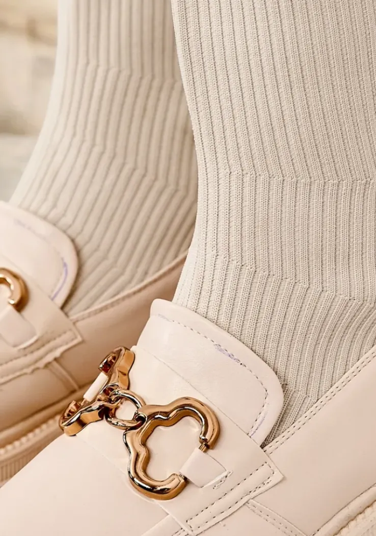 - Stylowe damskie kozaki za kolano na płaskim obcasie. Cholewka wykonana jest z elastycznego materiału tkaninowego i wstawek z eko skóry, w środku tkaninowa wkładka. Model wsuwany. Idealne do codziennych jesiennych outfitów!