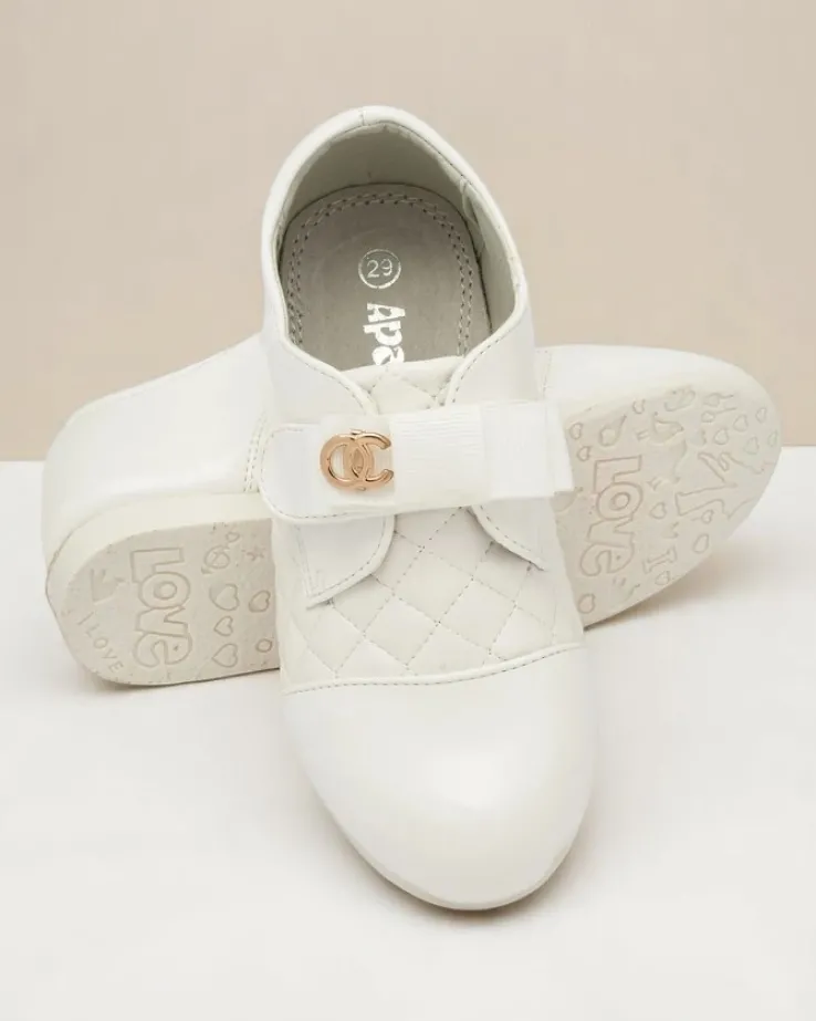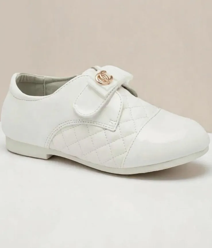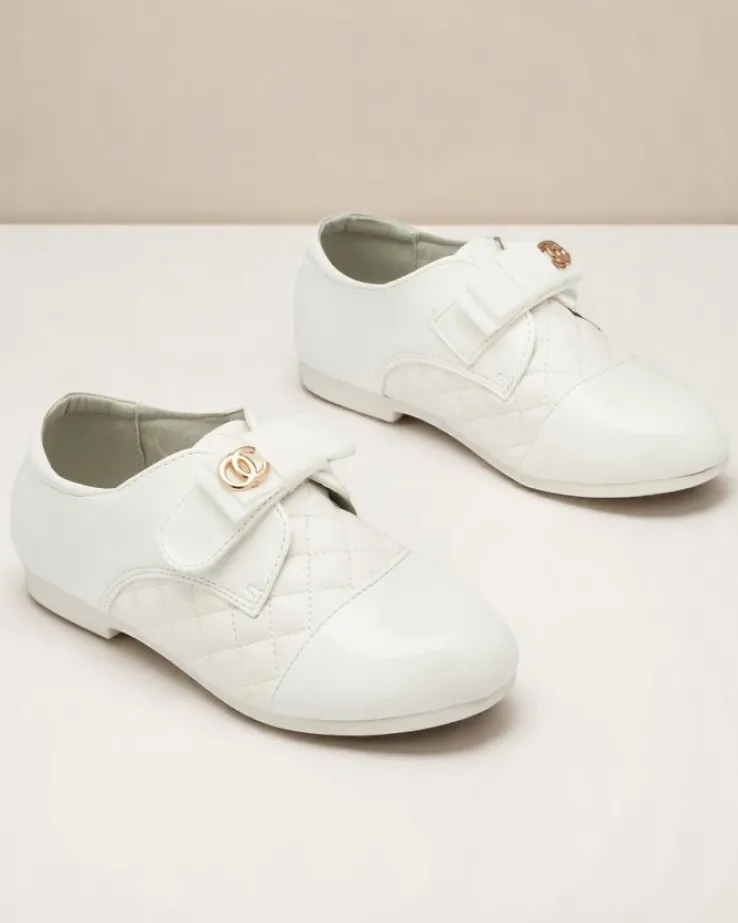 - Dziewczęce pikowane półbuty wykonane ze skóry ekologicznej z lakierowanymi wstawkami. Obuwie zapinane na rzep, a w środku posiada miękką wkładkę z poduszeczkami ze skóry naturalnej. Idealnie się sprawdzą na co dzień!