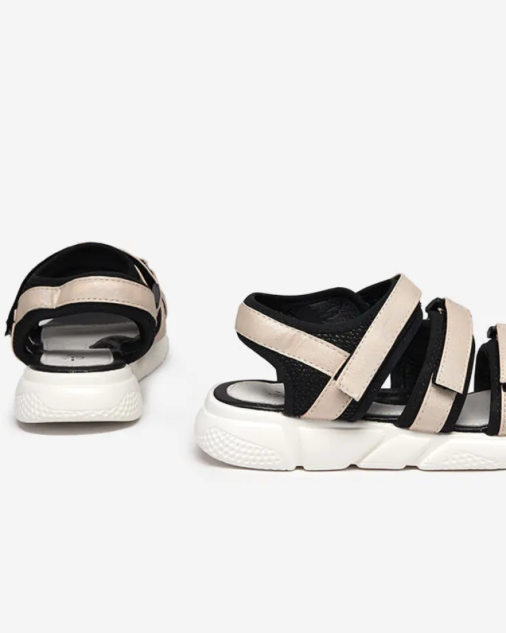 - Klasyczne dziewczęce sandałki wykonane ze skóry ekologicznej z błyszczącym wykończeniem. Wkładka również eko skórzana. Szerokość obuwia można regulować za pomocą rzep. Doskonale sprawdzą się na co dzień!