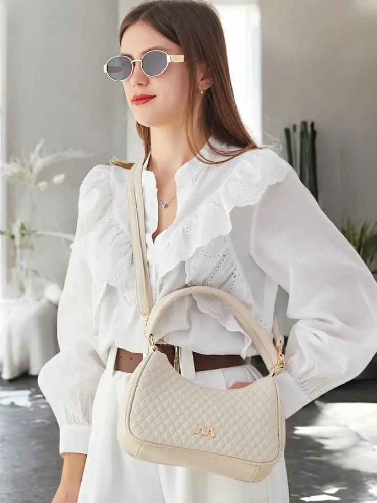 - Elegancka pikowana mała damska torebka zapinana na zamek, wykonana ze skóry ekologicznej.