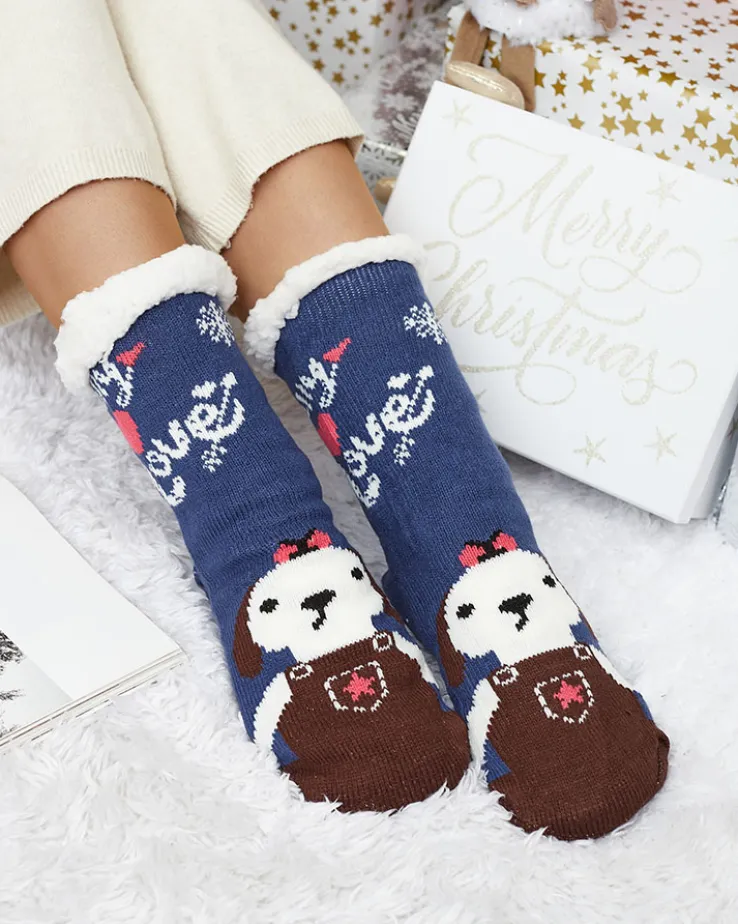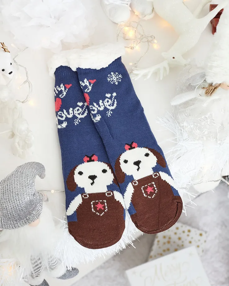 - Przepiękne damskie grube skarpety wykończone ślicznym wzorem z antypoślizgowym spodem. W środku ocieplane białym, cieplutkim kożuszkiem. Skarpetki świetnie się sprawdzą na chłodniejsze wieczory.