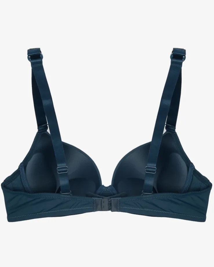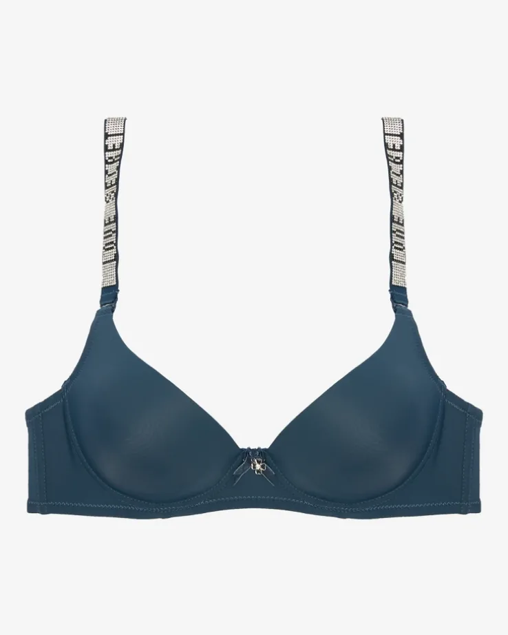 - Damski jednokolorowy, biustonosz push-up. Model zapinany z tyłu na haftki, ramiączka zdobione cyrkoniami, które są odpinane i posiadają regulację długości. Dodatkowo do produktu dołączone są klasyczne ramiączka. Dokładność pomiaru (+/-) 1 cm.