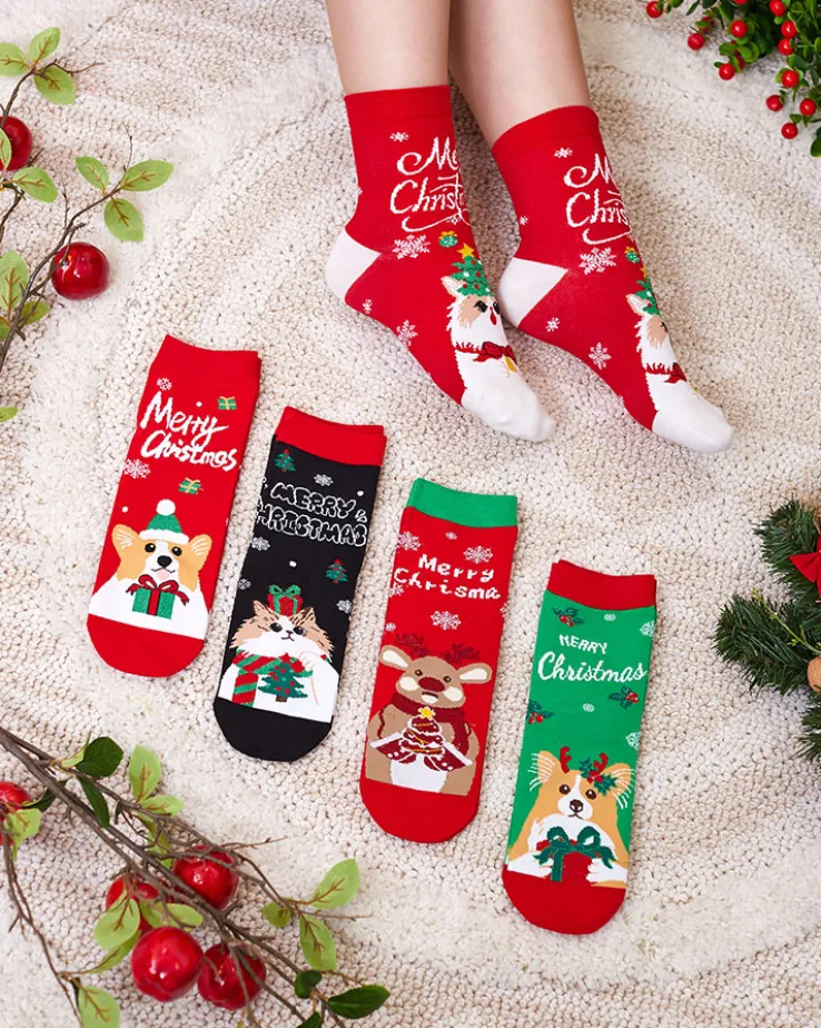 - Skarpety damskie z materiału bawełnianego wykończonego świątecznym wzorem. Skarpetki świetnie się sprawdzą na chłodniejsze wieczory!