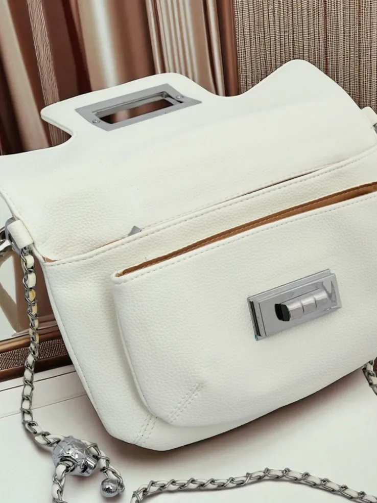 - Elegancka mała torebka damska kopertowa z eko skóry. Model z zapięciem na zamek i magnes, posiada 1 komorę. Dodatkowo regulowany pasek z łańcuszka. Idealna na oficjalne wyjścia!