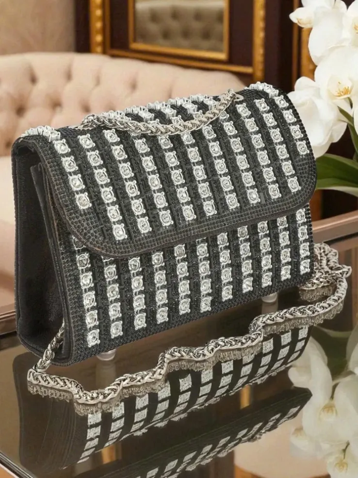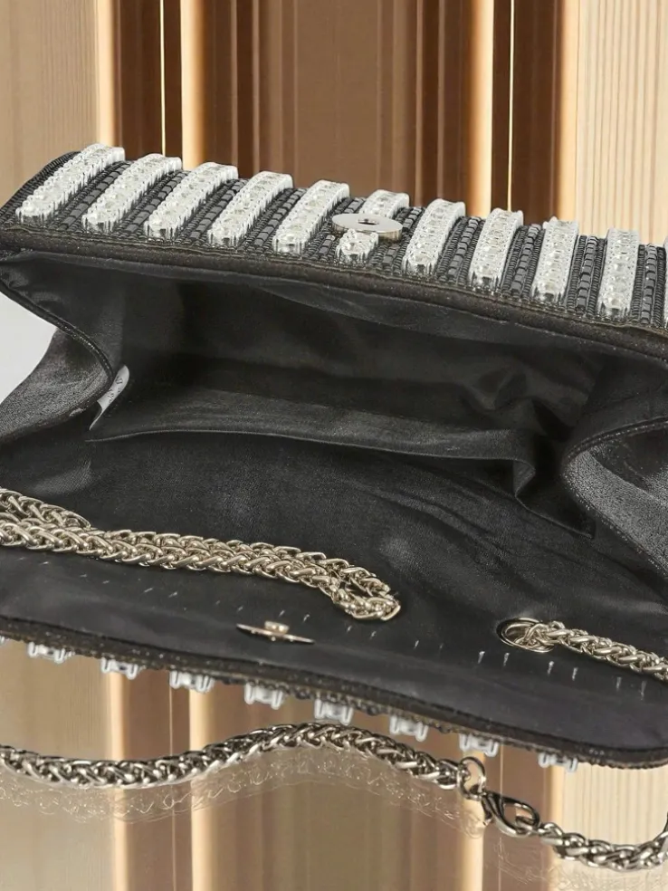 - Elegancka kopertówka z połyskującymi cyrkoniami, 1 komora, zamykana na zamek. Stylowe uszy i ozdobny łańcuszek dodają szyku. Idealna na wyjątkowe okazje – olśniewaj z klasą!