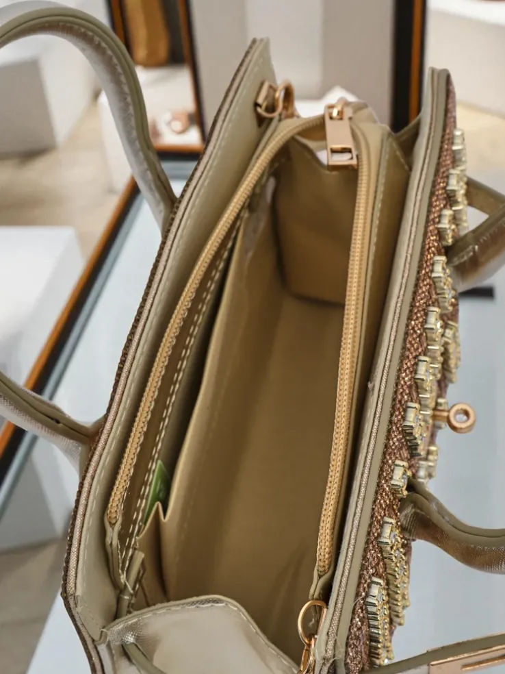 - Elegancka kopertówka z połyskującymi cyrkoniami, 1 komora, zamykana na zamek. Stylowe uszy i ozdobny łańcuszek dodają szyku. Idealna na wyjątkowe okazje – olśniewaj z klasą!