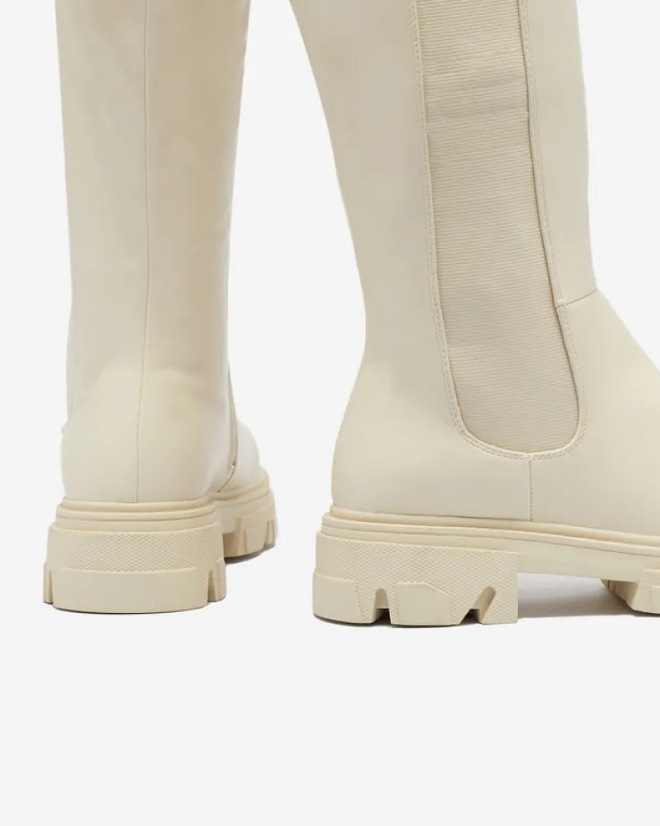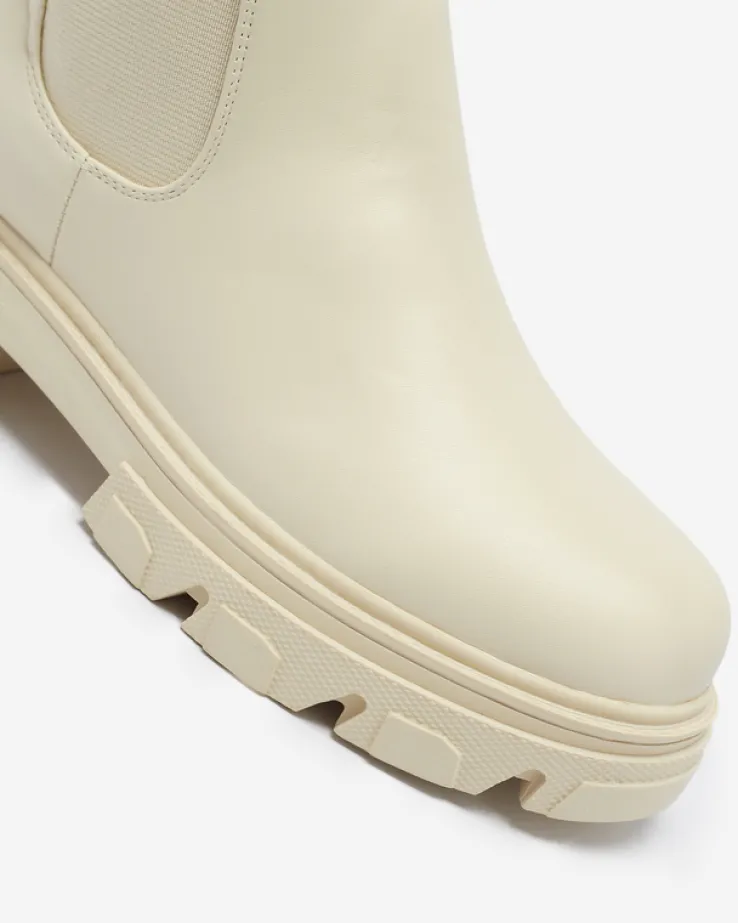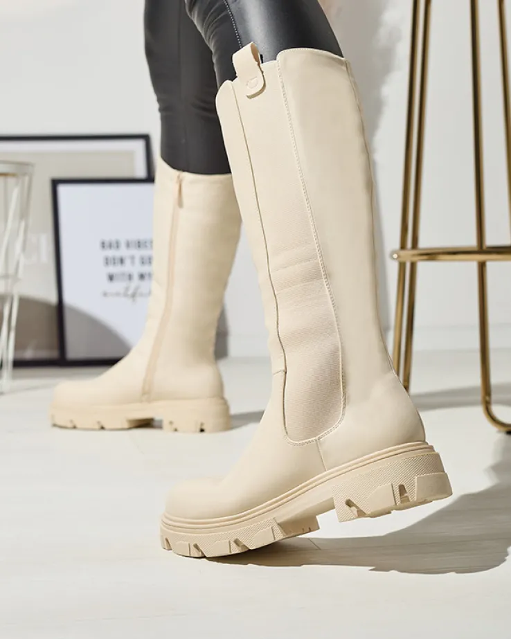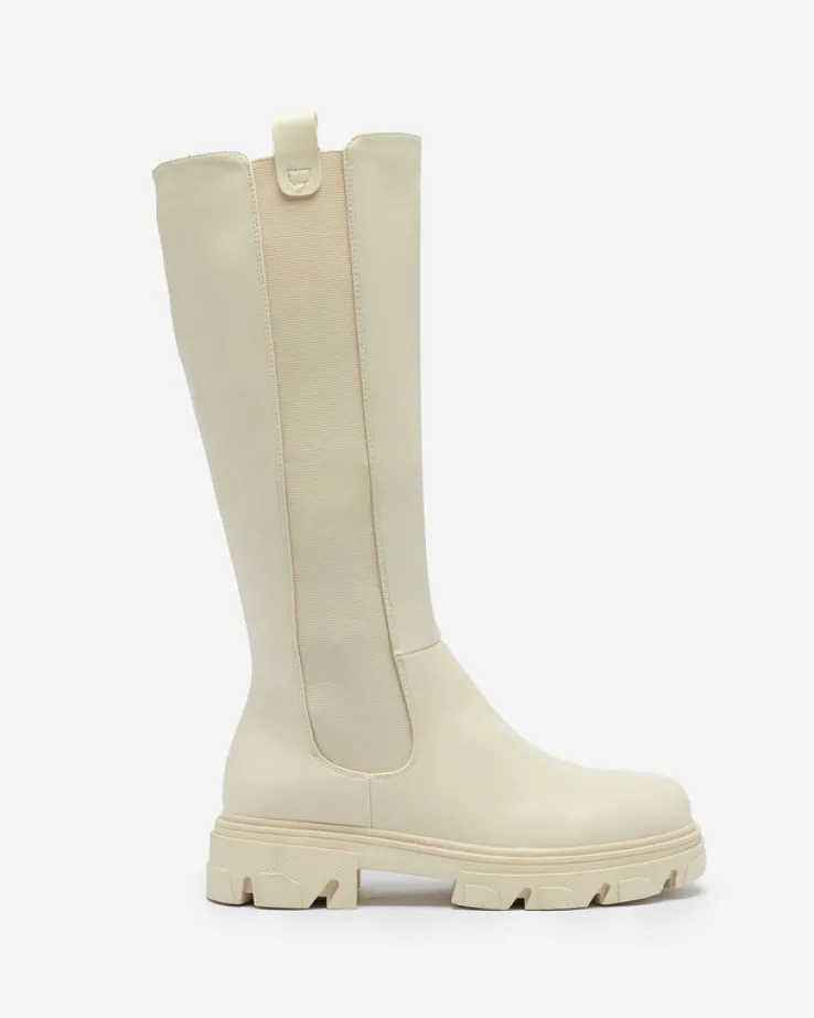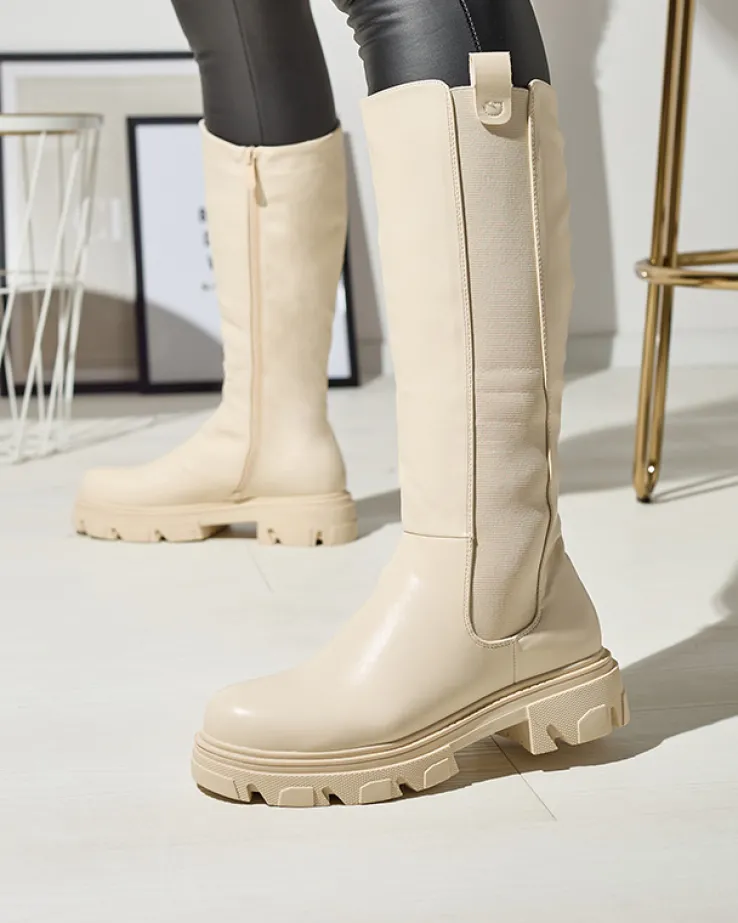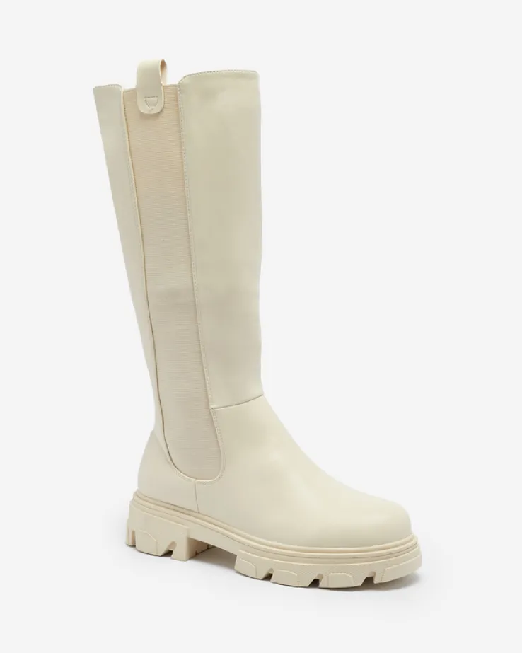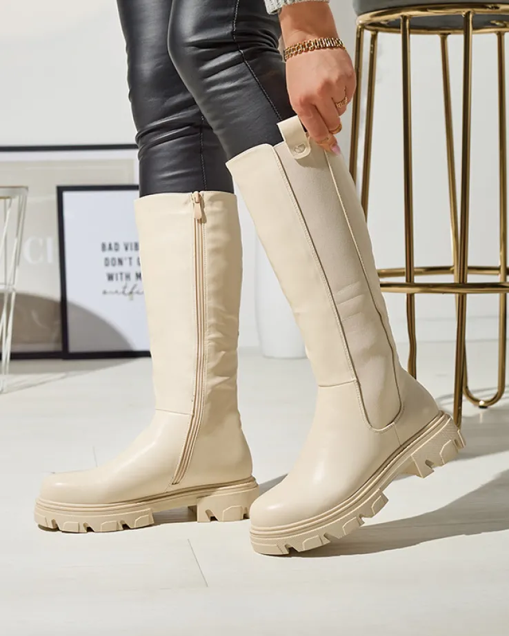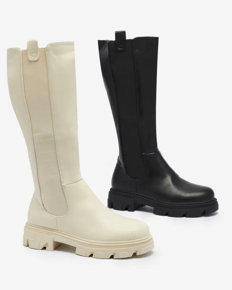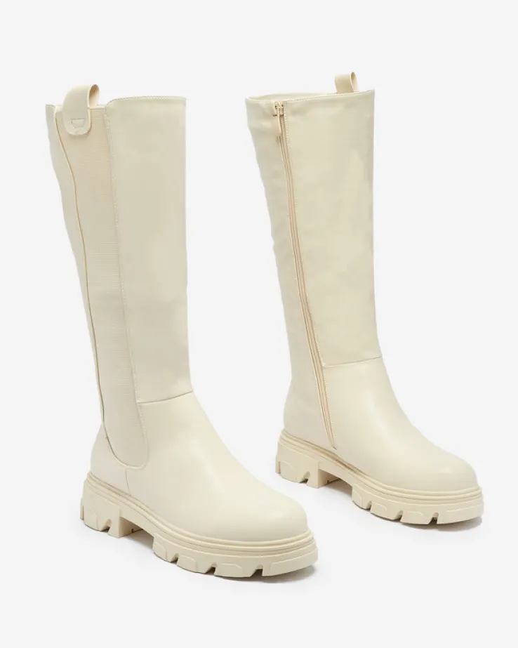 - Klasyczne damskie kozaki na niskim obcasie, wykonane ze skóry ekologicznej. Model jest zapinany suwakiem, w środku nie posiada ocieplenia, po boku elastyczna wstawka. KREMOWE BUTY DAMSKIE KOZAKI NIEOCIEPLANE VEBISSA