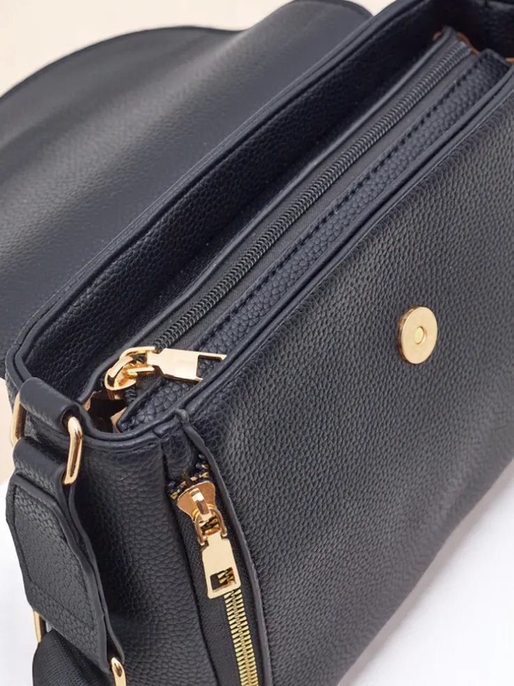 - Kompaktowa torebka z eko skóry z jedną komorą i dwiema praktycznymi kieszonkami. Regulowany pasek pozwala dopasować długość, a ozdobny front dodaje elegancji. Idealna na co dzień – łączy styl i funkcjonalność w lekkiej formie.