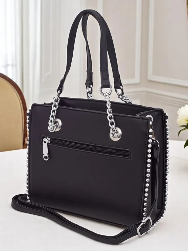 - Kompaktowa torebka Zelia z eko skóry, subtelnym tłoczeniem i ozdobnymi dżetami. Jedna komora, trzy kieszonki i odpinany, regulowany pasek zapewniają styl i wygodę na co dzień.