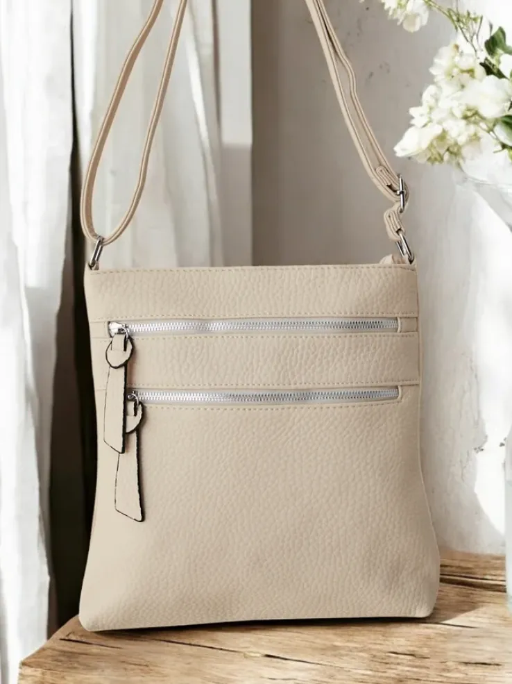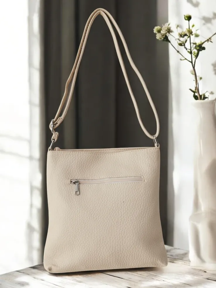 - Torebka damska, zapinana na zamek, wykonana ze skóry ekologicznej.