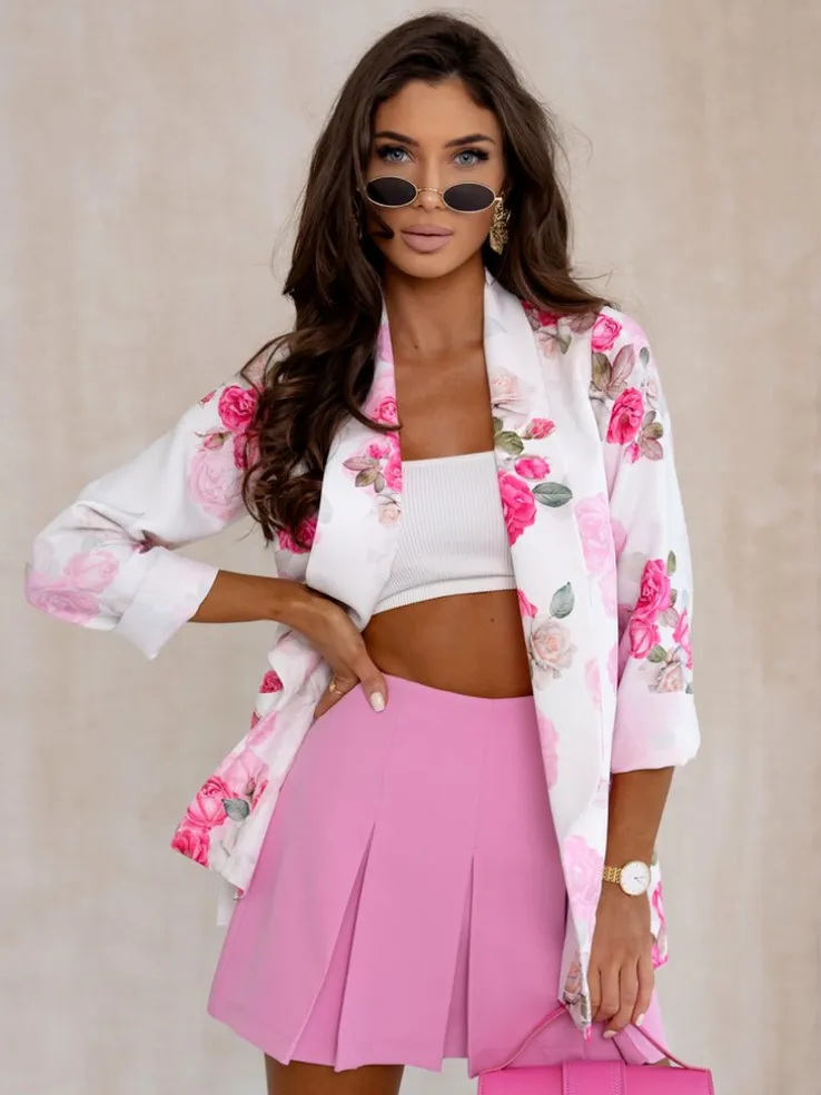 Royalfashion Marynarka damska bez zapięcia z kwiatami róży