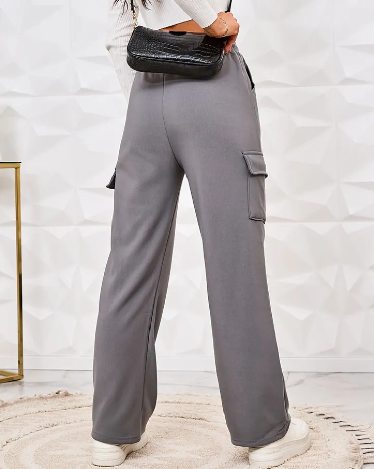 - Kultowe damskie szerokie spodnie typu bojówki, wykonane z przyjemnej tkaniny. Model posiada rozciągliwą gumkę w pasie i cztery wsuwane kieszenie. Ocieplany futerkiem. UWAGA: Dokładność pomiaru (+/-) 1 cm.