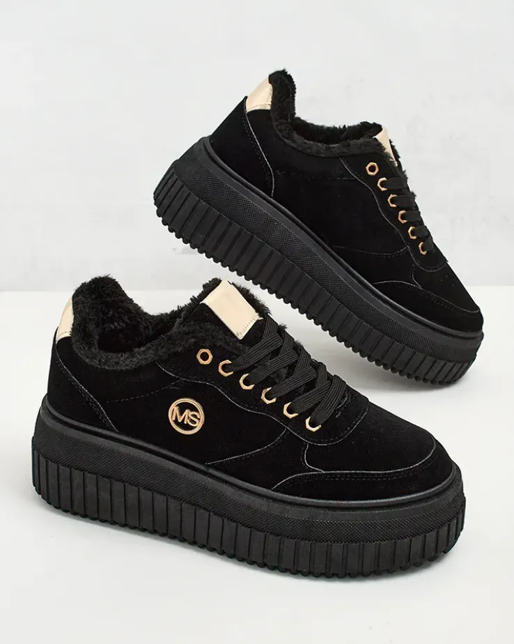- Sportowe sneakersy damskie na grubszej podeszwie. Cholewka sznurowana, wykonana z nubuku ekologicznego. Wnętrze w całości ocieplone futerkiem. Idealne na chłodniejsze dni!