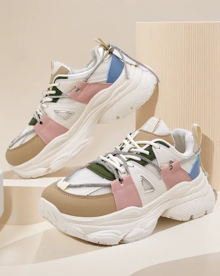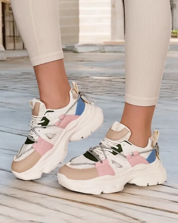 - Damskie buty sportowe typu sneakersy na grubszej podeszwie. Wykonane ze skóry ekologicznej z tkaninowymi wstawkami. Wkładka to eko skóra. Super dodatek do twoich codziennych outfitów w stylu casual!