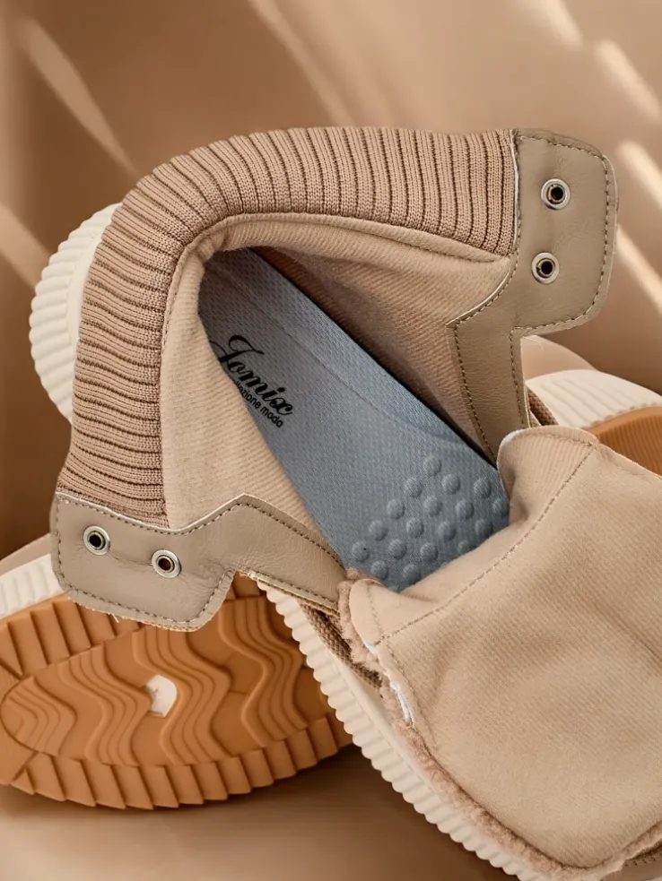 - Ponadczasowe damskie obuwie typu śniegowce na grubej podeszwie. Cholewka wykonana ze skóry ekologicznej i eko zamszu. W środku ocieplenie w formie futerka, obuwie sznurowane. Idealne na chłodniejszą porę roku!