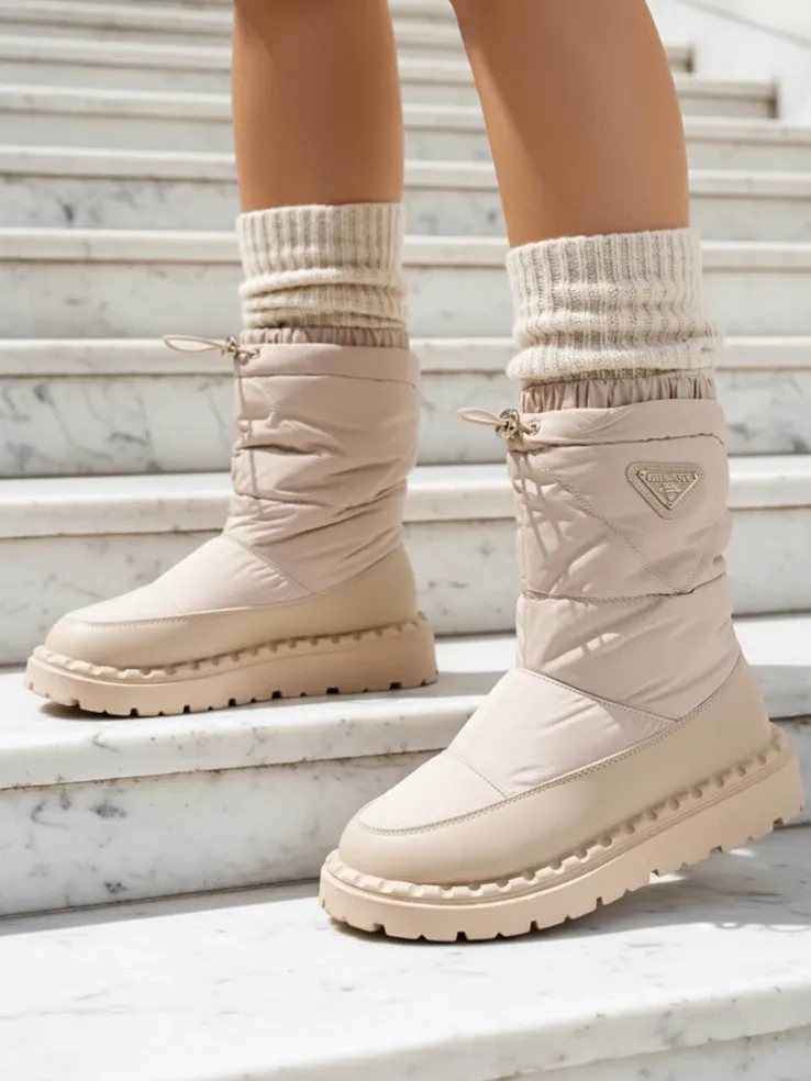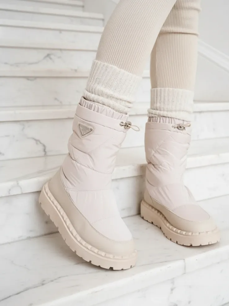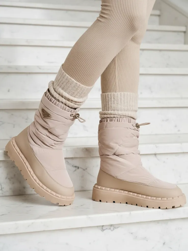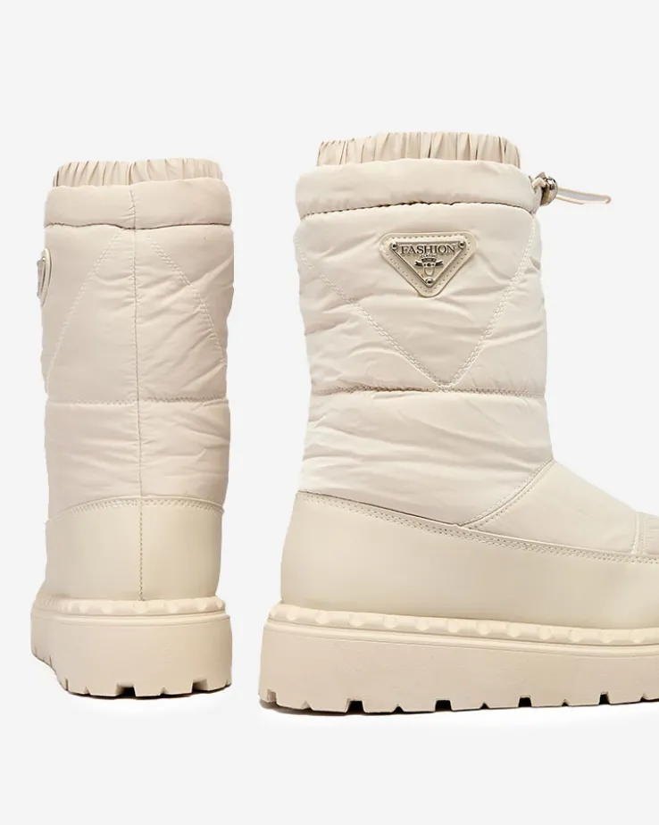 - Rewelacyjne damskie obuwie typu śniegowce. Cholewka wykonaną z materiału a’la cerata i wstawkami ze skóry ekologicznej. W środku ocieplenie w formie futerka, obuwie posiada ściągacz. Idealne na zimowy czas!