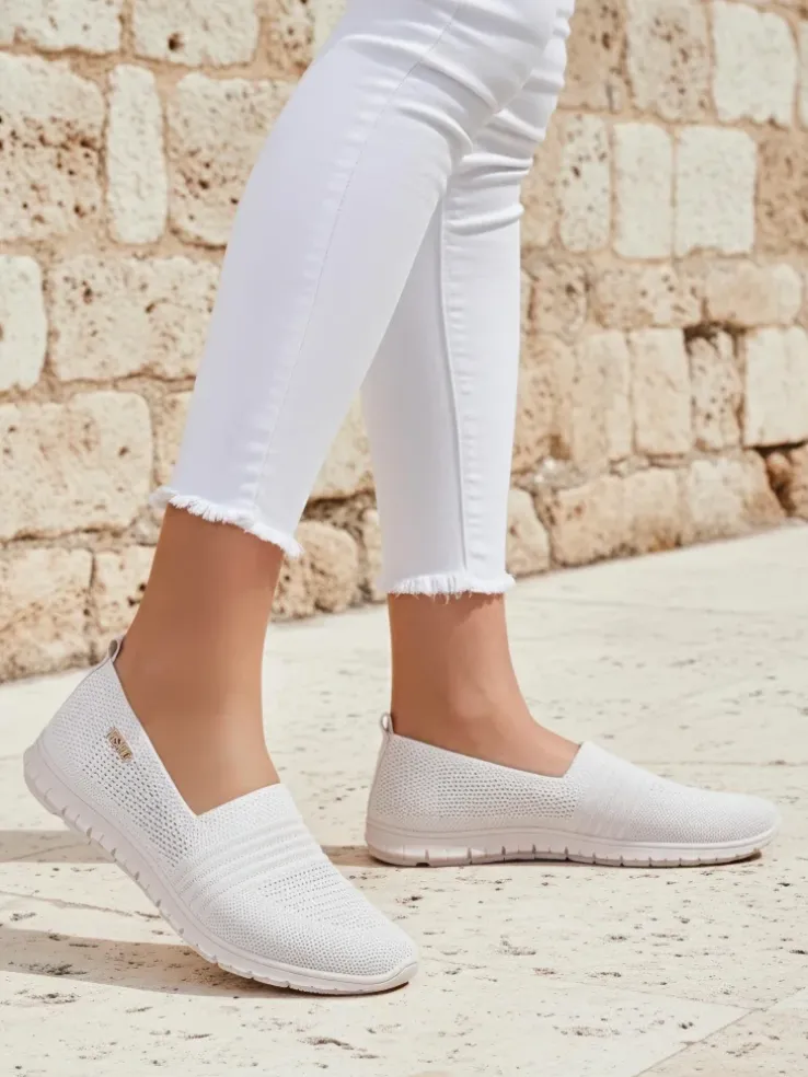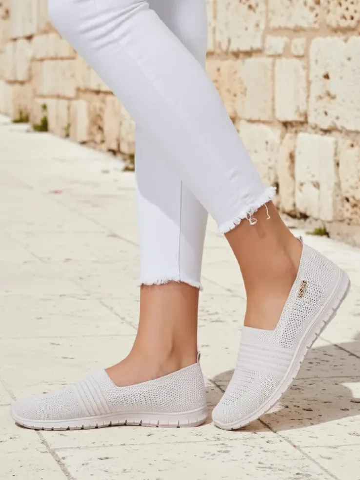- Sportowe damskie mokasyny na płaskiej podeszwie. Klasyczny model wykonany z tkaniny. Idealna baza na co dzień!