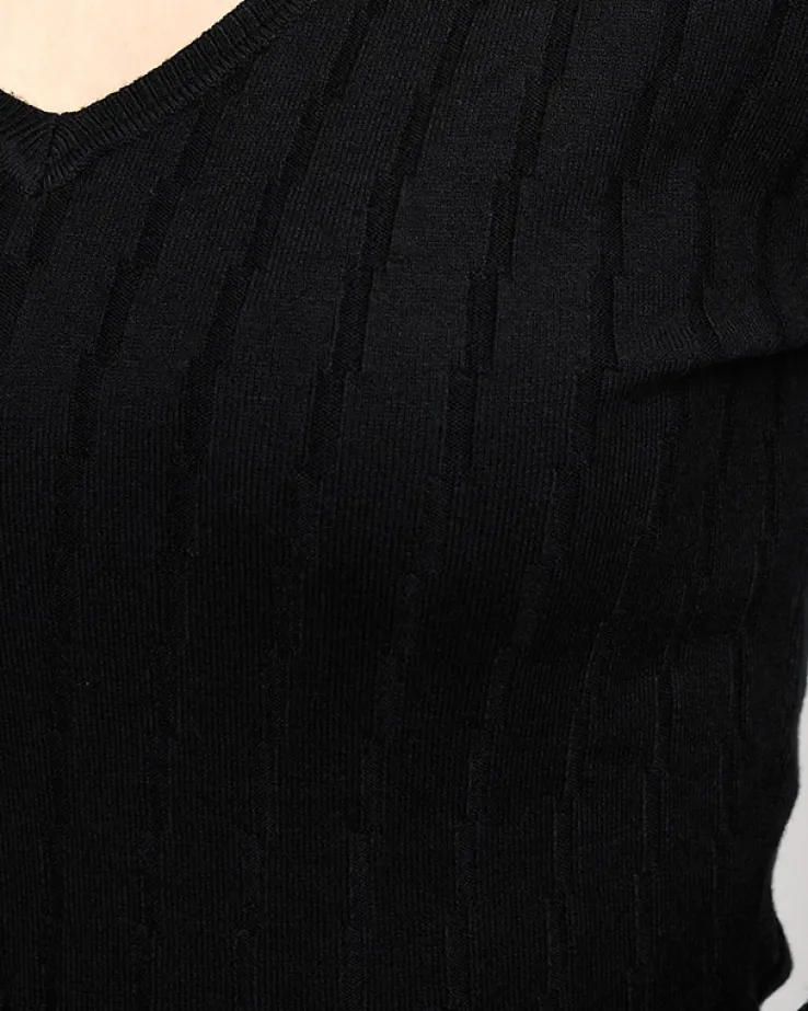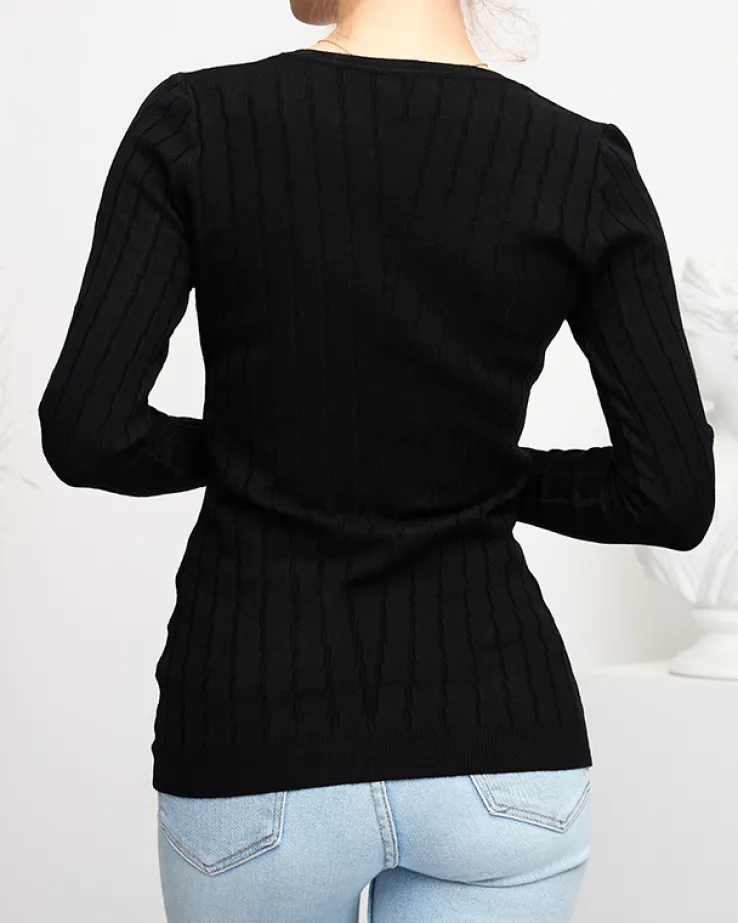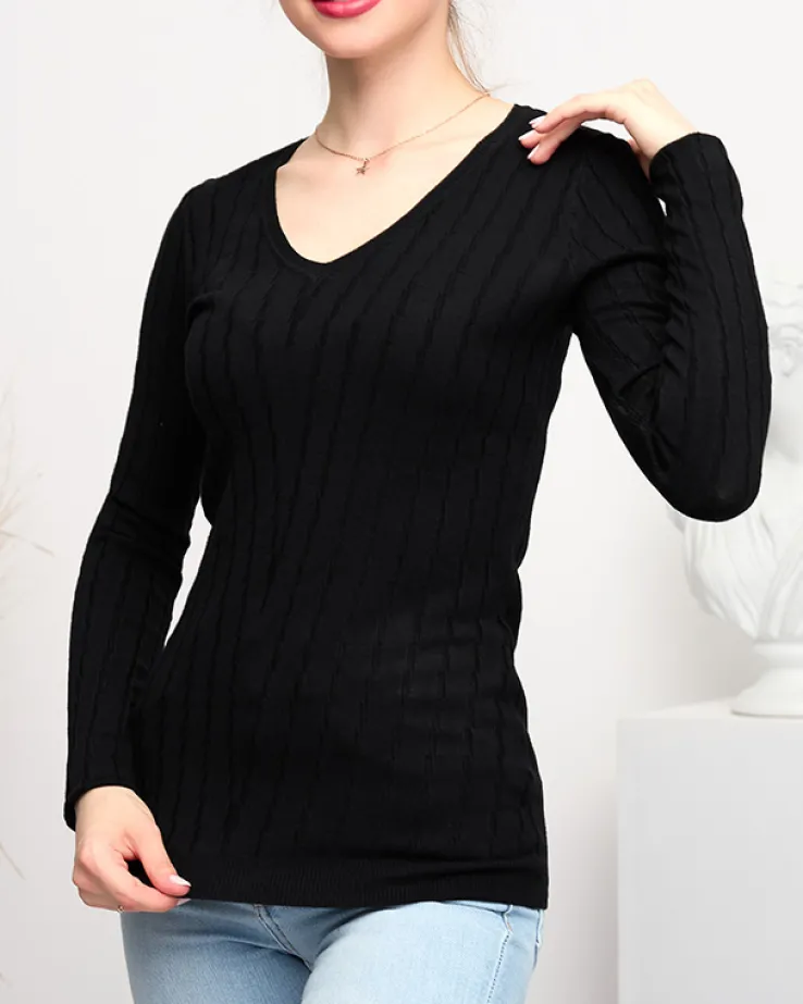 Royalfashion Sweter damski z dekoltem w serek w kolorze czarnym