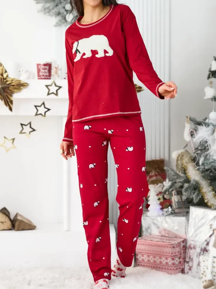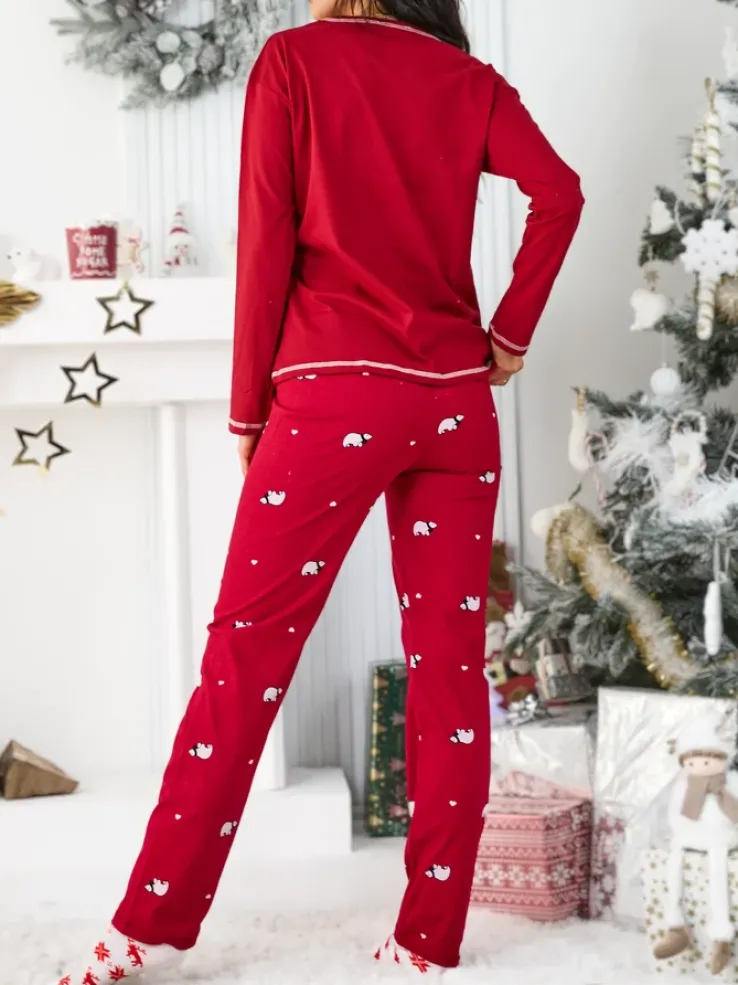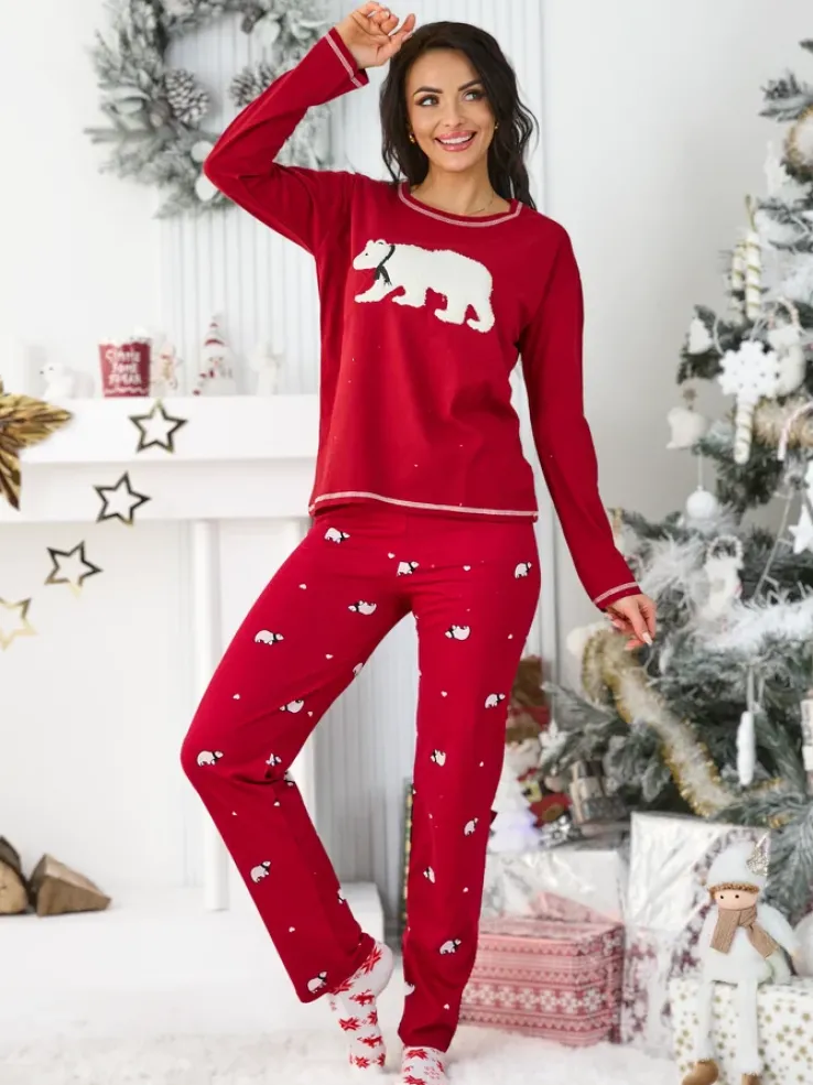 - Piżama damska 2- częściowa z długim rękawem i długimi nogawkami wykonana z przyjemnego materiału. Model jest zdobiony printem. Idealna na domowe wieczory! UWAGA: Dokładność pomiaru (+/-) 1 cm.