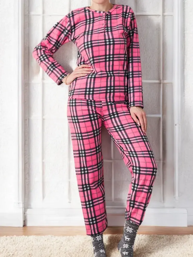- Piżama damska 2- częściowa z długim rękawem i długimi nogawkami wykonana z przyjemnego materiału. Model jest zdobiony printem. Idealna na domowe wieczory! UWAGA: Dokładność pomiaru (+/-) 1 cm.