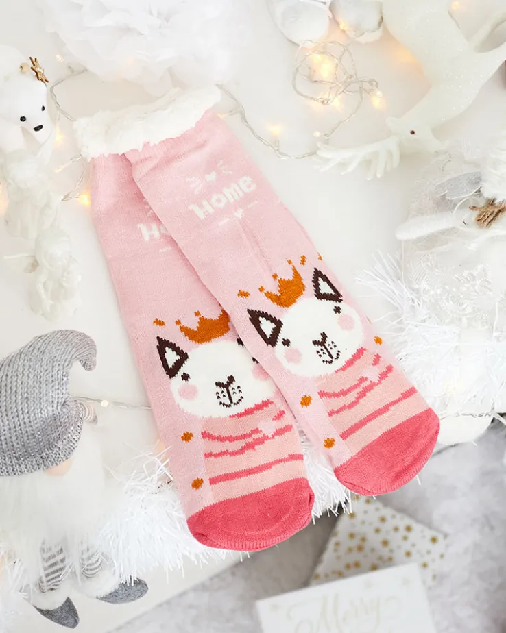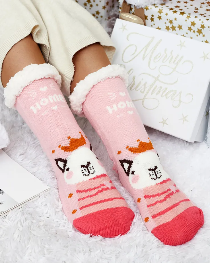 - Przepiękne damskie grube skarpety wykończone printem. W środku ocieplane białym, cieplutkim kożuszkiem. Skarpetki świetnie się sprawdzą na chłodniejsze wieczory!