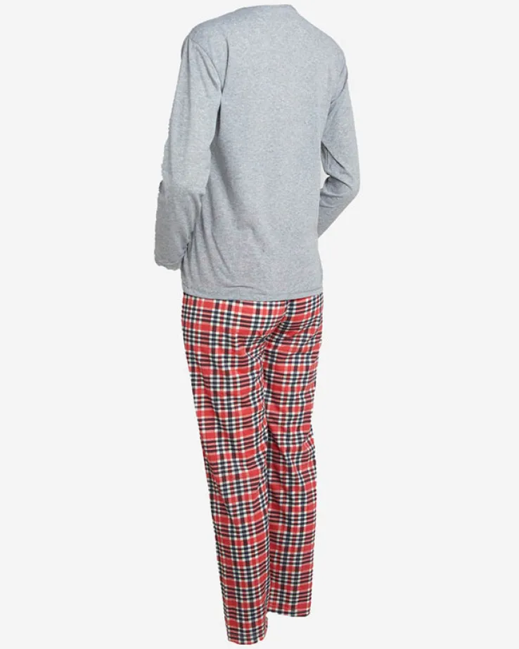 - Świąteczna damska 2-częściowa piżama wykonana z tkaniny bawełnianej wykończonej ozdobnym printem. Komplet posiada bluzkę z długimi rękawami oraz spodnie z gumą w pasie i prostymi nogawkami. UWAGA: Dokładność pomiaru (+/-) 1 cm.