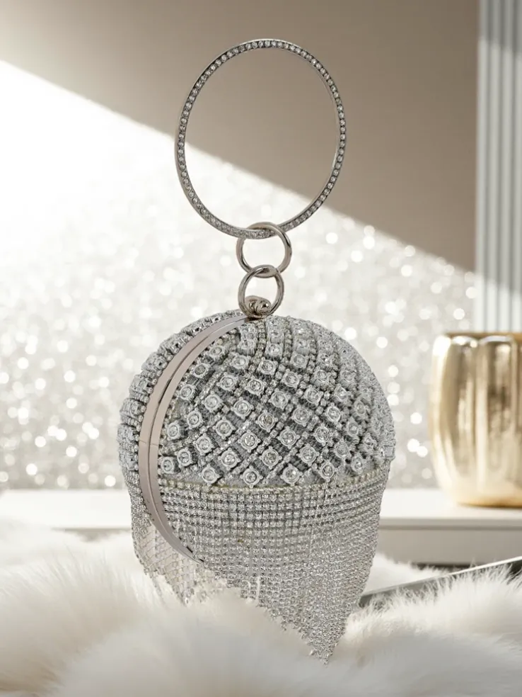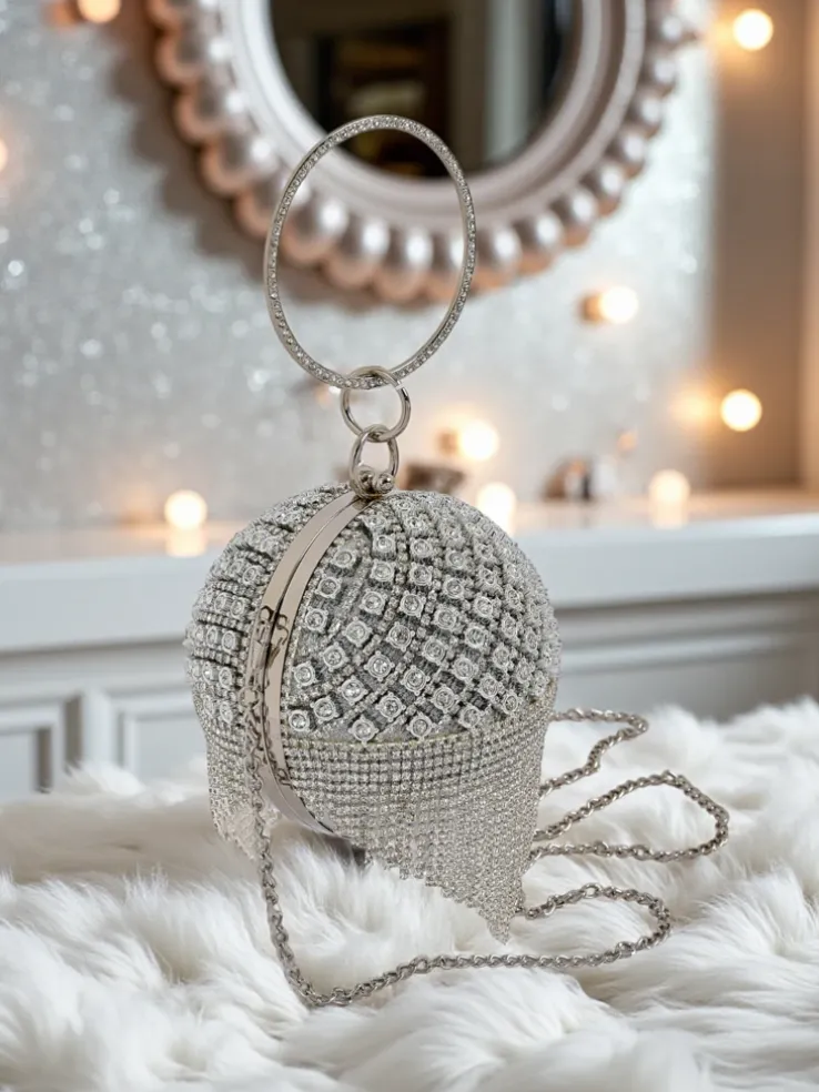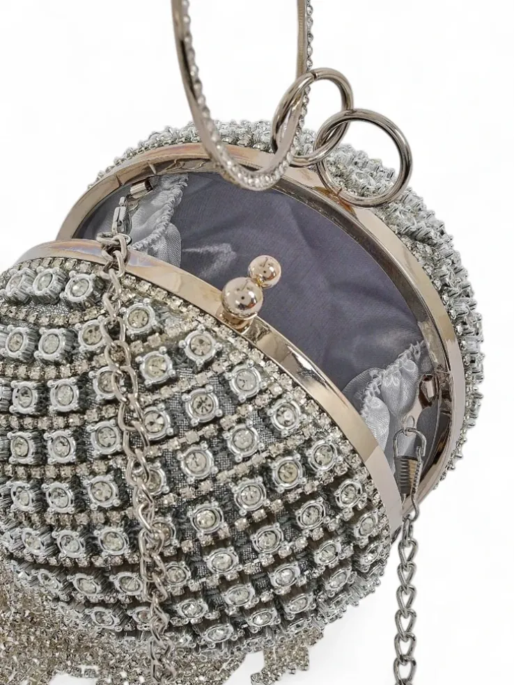 - Kulista kopertówka z połyskującymi cyrkoniami i eleganckim łańcuszkiem na ramię. Idealna na wieczorne wyjścia — przyciąga spojrzenia i dopełnia każdą stylizację.