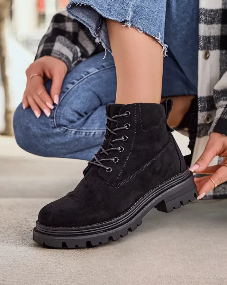 - Delikatnie ocieplane trapery damskie, wykonane z eko skóry zamszowej. Cholewka wiązana i zapinana na zamek. W środku ocieplenie w formie futerka. Konkretne buty na złą pogodę!