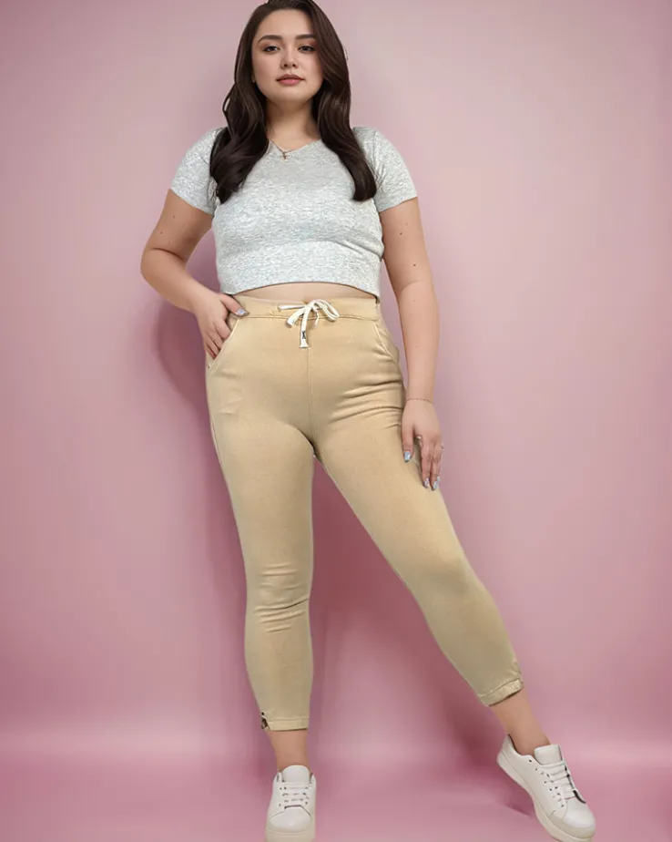 - Damskie tregginsy z gumą w pasie oraz 4 kieszeniami. Model z wysokim stanem, wykonany z rozciągliwego materiału. Dodatkowo troczki w pasie. Świetny wybór do pracy i nie tylko! UWAGA: Dokładność pomiaru (+/-) 1 cm.