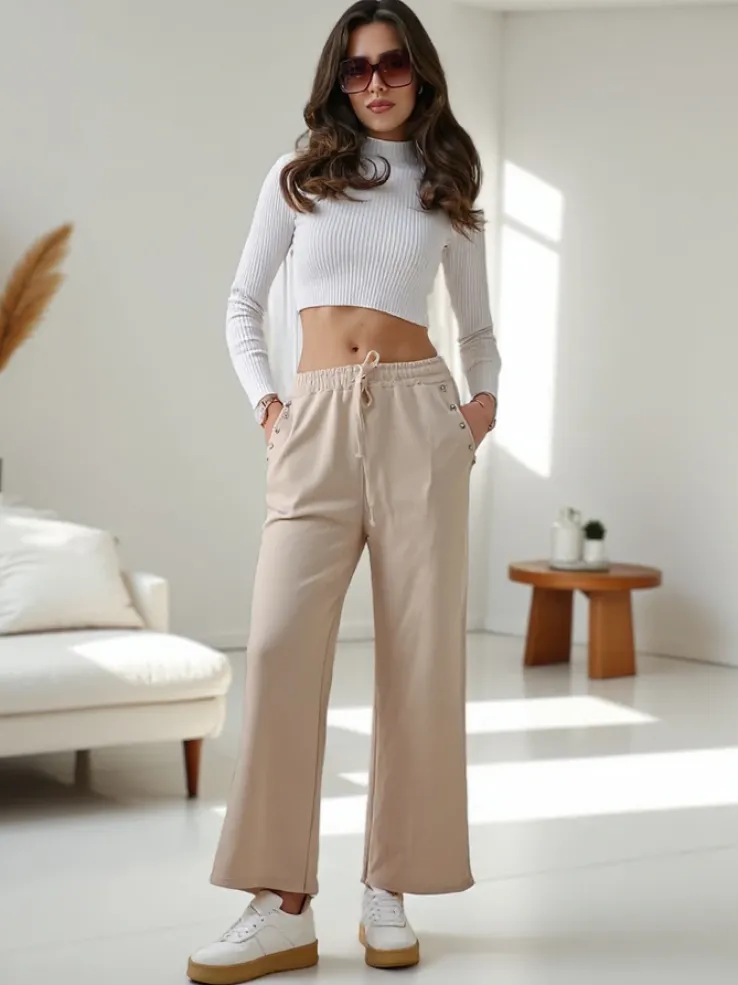 - Szerokie spodnie damskie dresowe to połączenie komfortu i stylu. Wykonane z lekkiego, oddychającego materiału, idealne na co dzień. Ich luźny krój zapewnia swobodę ruchów, a elastyczny pas gwarantuje wygodę.